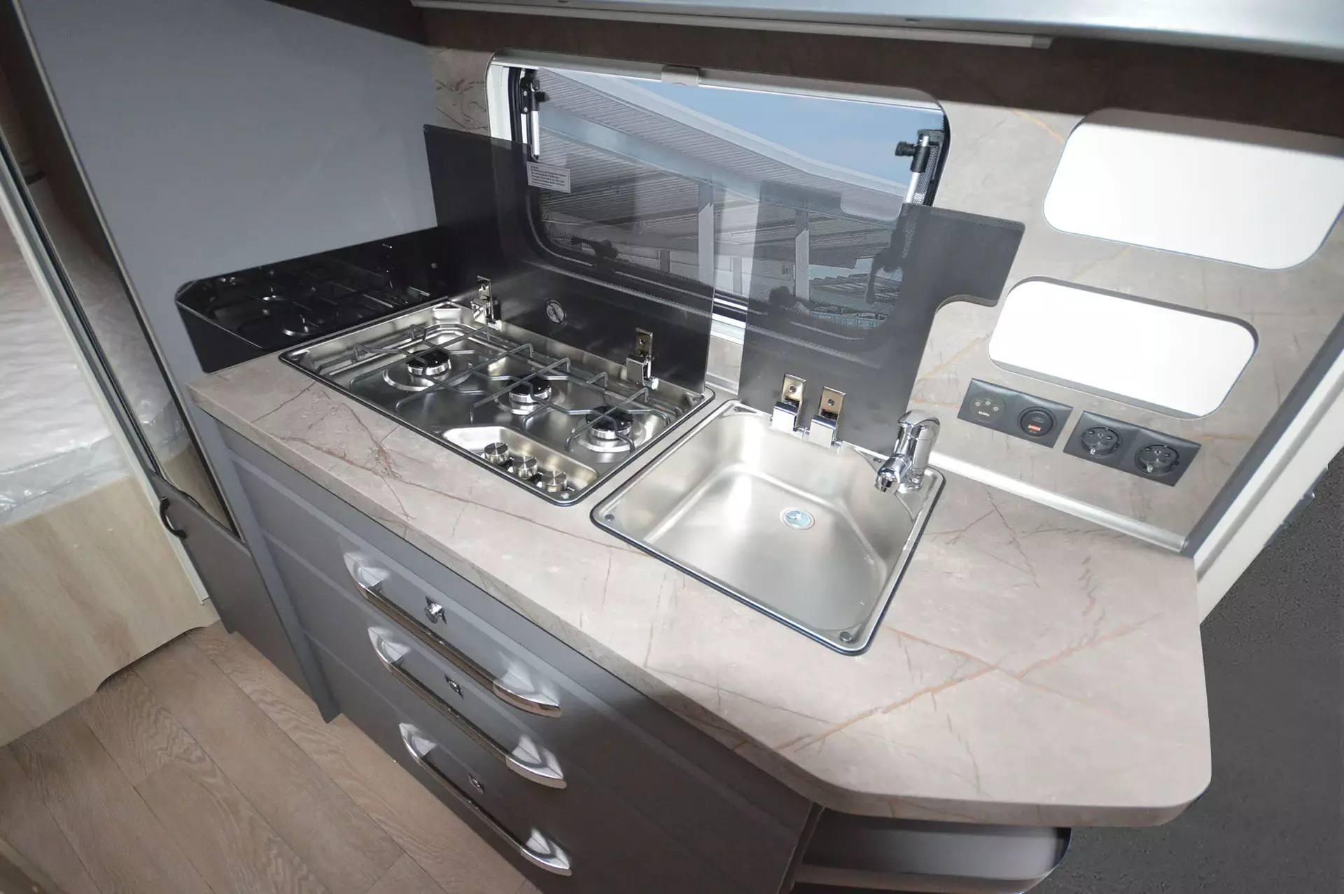 - Garage under bunk bed (not in conjunction with ALDE hot water heating system, drawing board under children's bed not included)