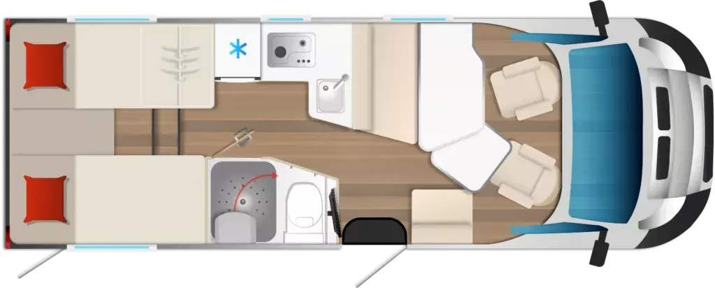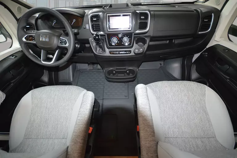 - Komfort Paket 1 (Fahrerhausverdunkelung, Cassettenplissees Front- und Seitenscheiben, Garagenklappe in Fahrtrichtung links, Sun-Roof (Aufstellbar, mit Verdunkelung und Fliegenschutz), Aufbautür breite Ausführung (mit Fenster und Zentralverriegelung), Alurahmenfenster, Dachfenster 50 x 70 cm mit Verdunkelungsrollo und Fliegenschutz im Wohnbereich, Elektrisch ausfahrbare Einstiegsstufe, Licht Paket, 7 Display für My Bürstner App)