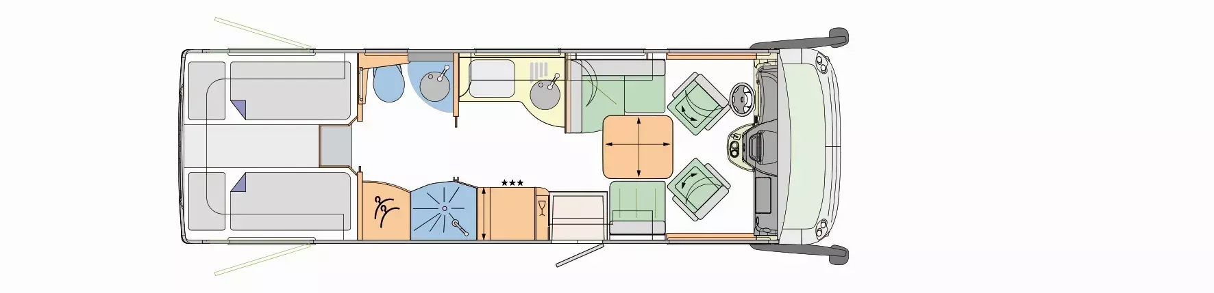 - Acoustic package for the rear sleeping area (2 x 2-way speaker systems, 2 x mid-bass drivers and 4-channel amplifier for sound optimization, Full HD LED Smart TV)