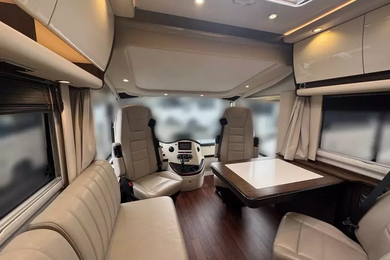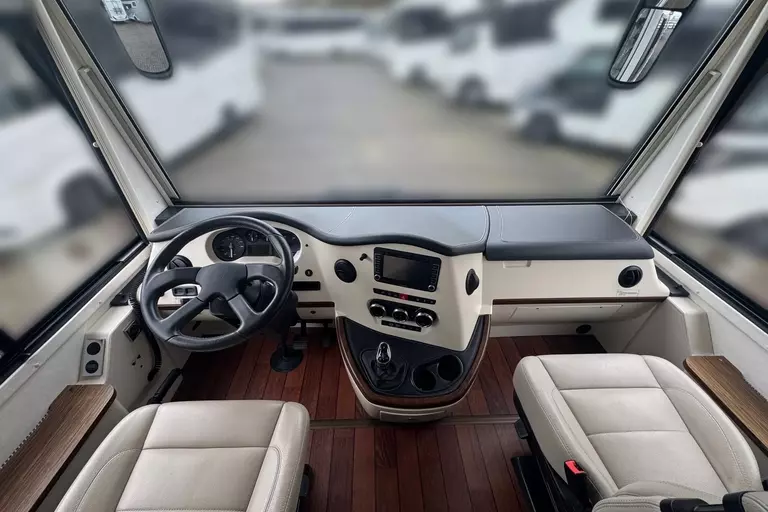 -Holzjalousien Wohnraum; Ledereinfassungen an Wohnraum- und Fahrerhausfenstern
