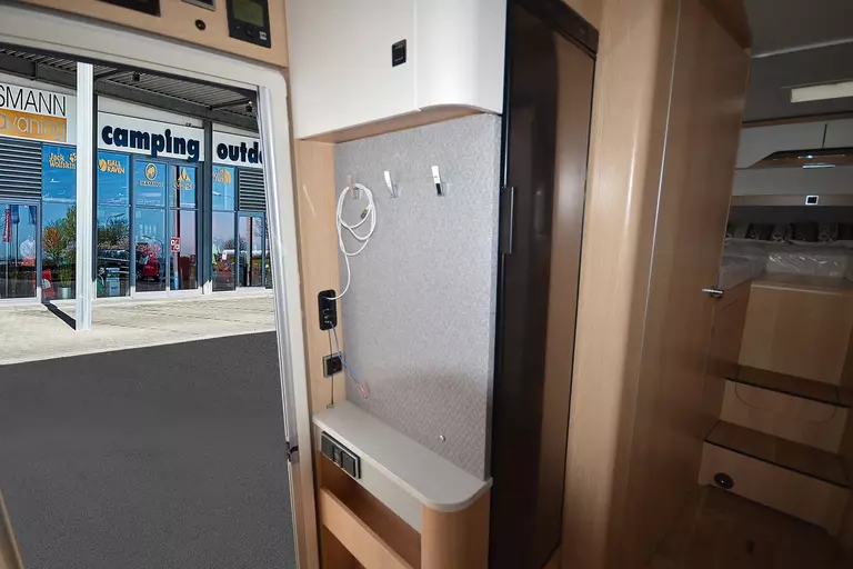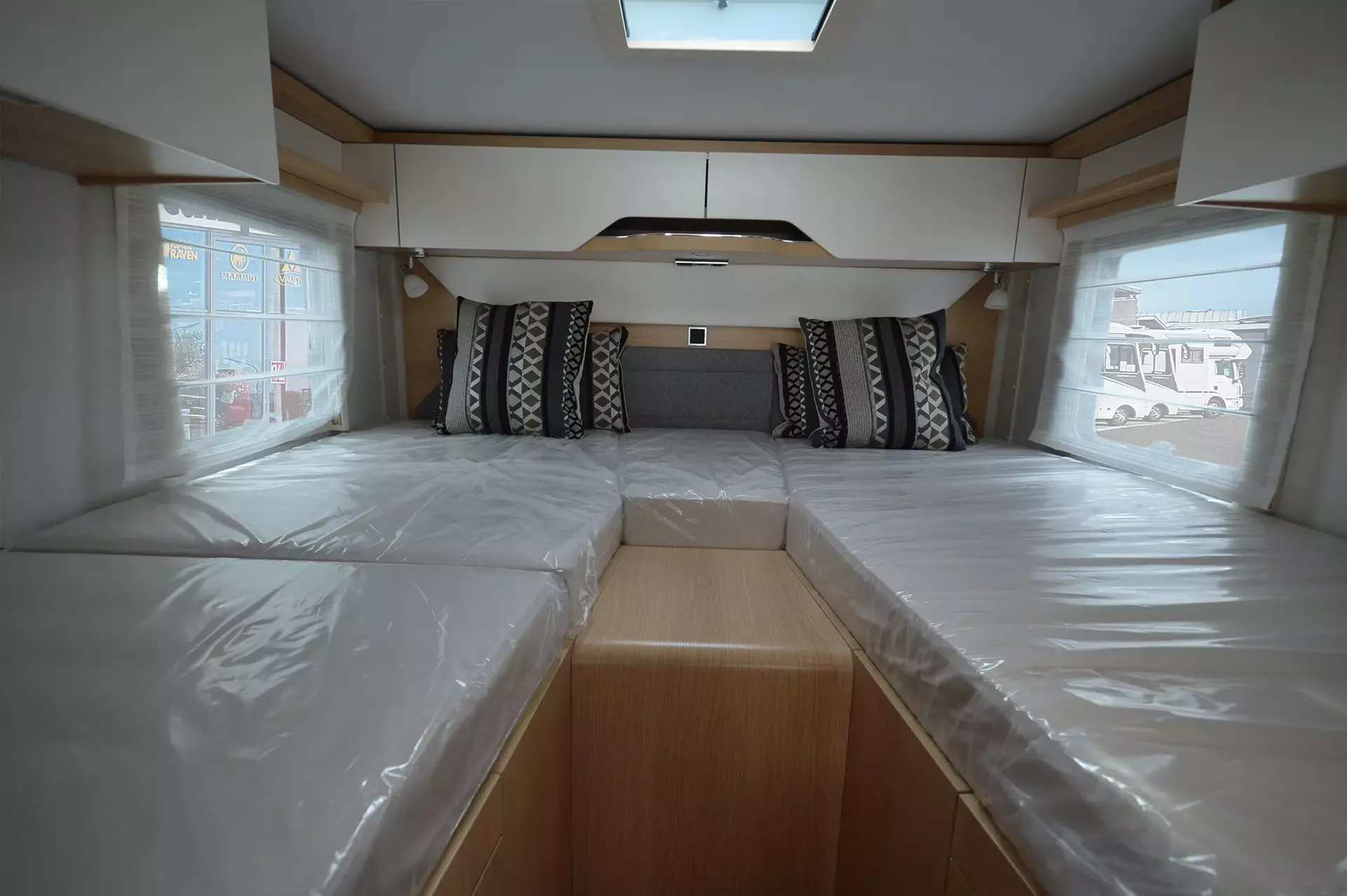 -Wohnkomfort-Paket (Einlegeboden mit Holzoberfläche, Spannbettlaken nach Maß für Heckbetten individuell an Matratzen angepasst, 4 Kissen mit Bezug, Ambient-Light-System: Mehr-Ebenen Lichtsystem mit dynamischer und individueller Steuerung der Beleuchtung (inkl. Lichttemperatur) sowie stimmungsvoller Sockelbeleuchtung, 4 x 230 V / 1 x 12 V / 1 x Doppel-USB Zusatzsteckdosen (inkl. Küchenwand-Verkleidung))