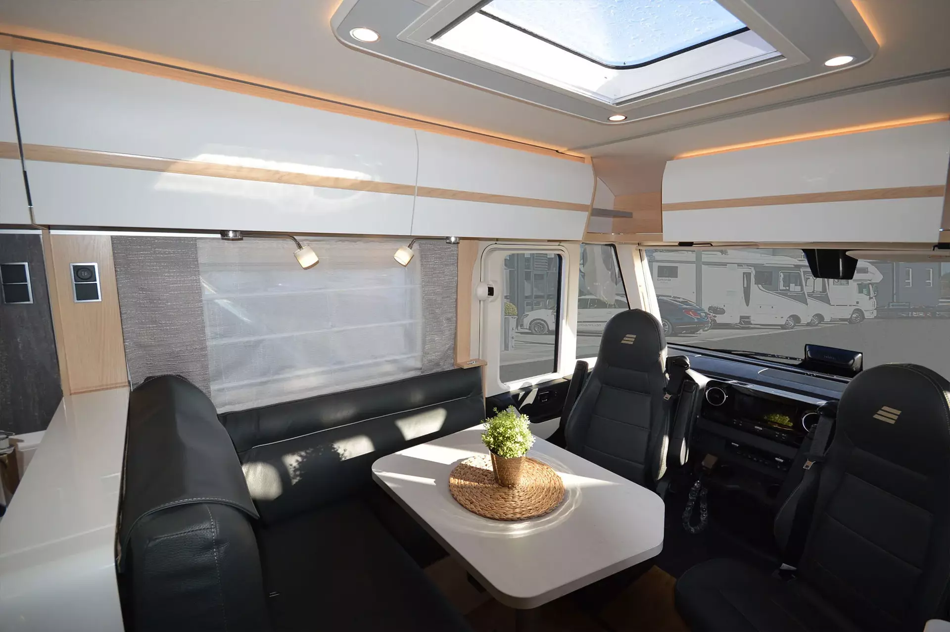 -Elektrischer Rollladen im Bug inkl. Sichtschutzrollo für
