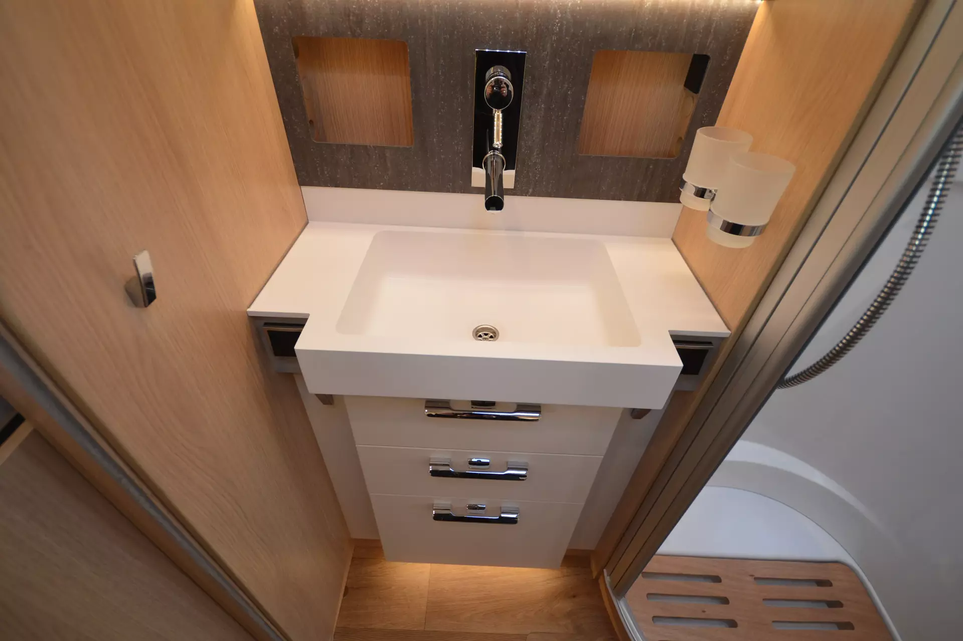 Schuh- und Multimediafach sowie 2 x 230 V und 1 x Doppel-USB