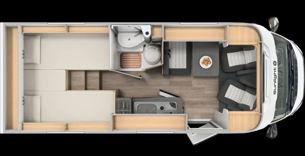 - Adventure Edition (Fiat Ducato 3,500 kg – 2.2 Multijet – 103 kW / 140 HP Euro 6 – 6-speed manual transmission, Fiat White, Adventure decals, Adventure interior, window in the front hood, 2nd exterior storage compartment hatch (size depends on the model), single bed conversion to double bed, One Black package (awning, triple bike rack), Basic package, painted bumper package, bi-color alloy wheel package)