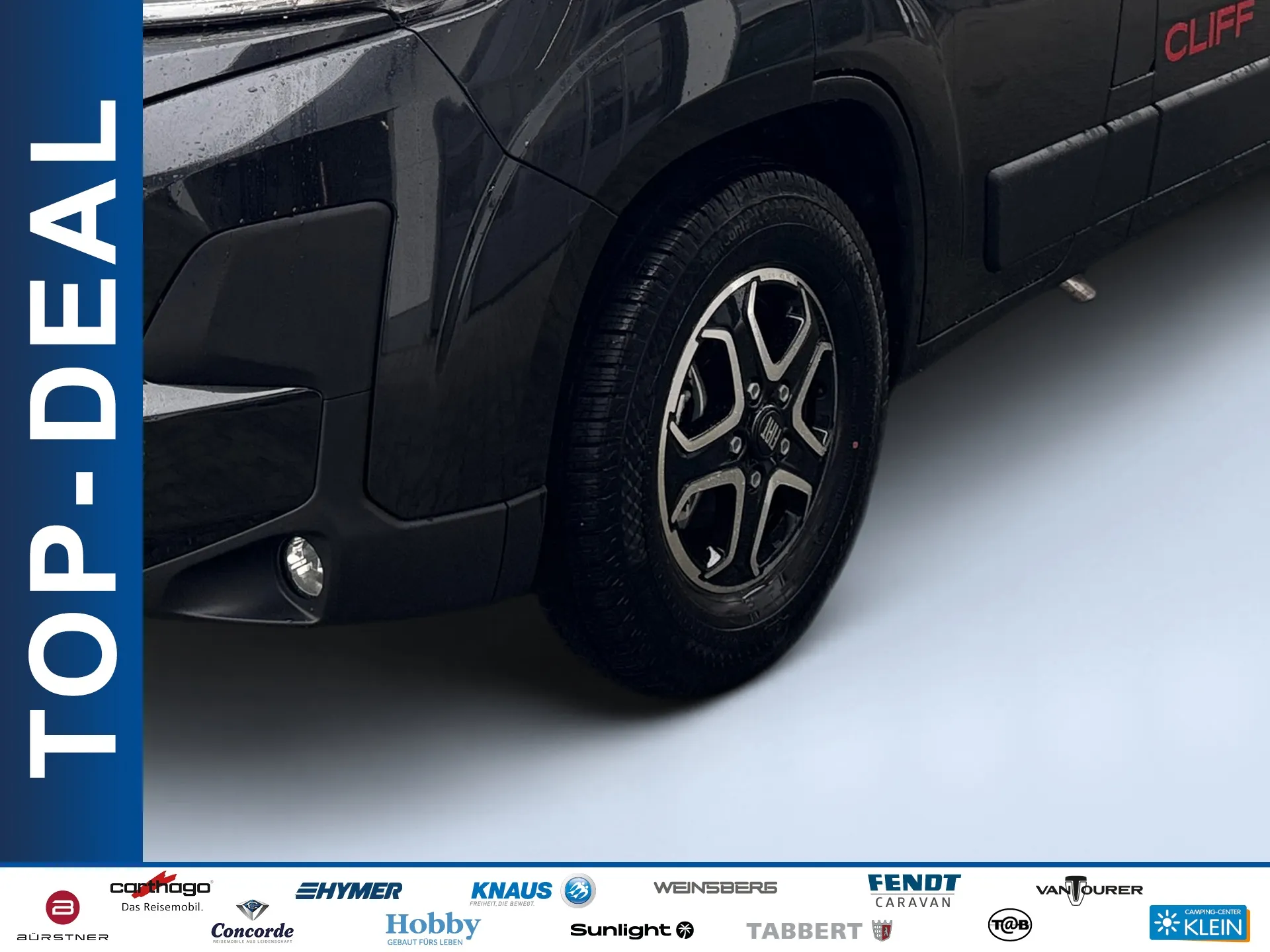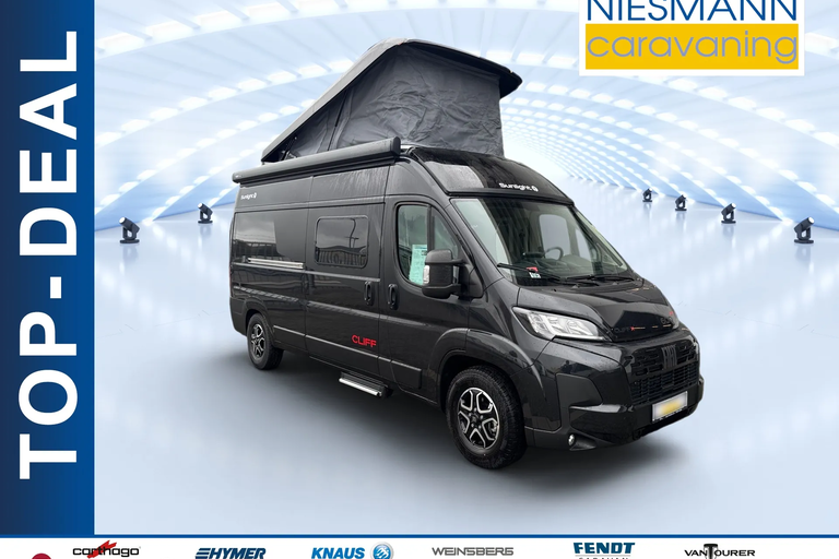 - CLIFF RT package (elevating roof including RT decals) Pop-top roof can be fully opened at the front, including fly screen | LED reading light | USB socket | high-quality mattress | Standard rooflight. Total exterior height (with roof closed): 281 cm.