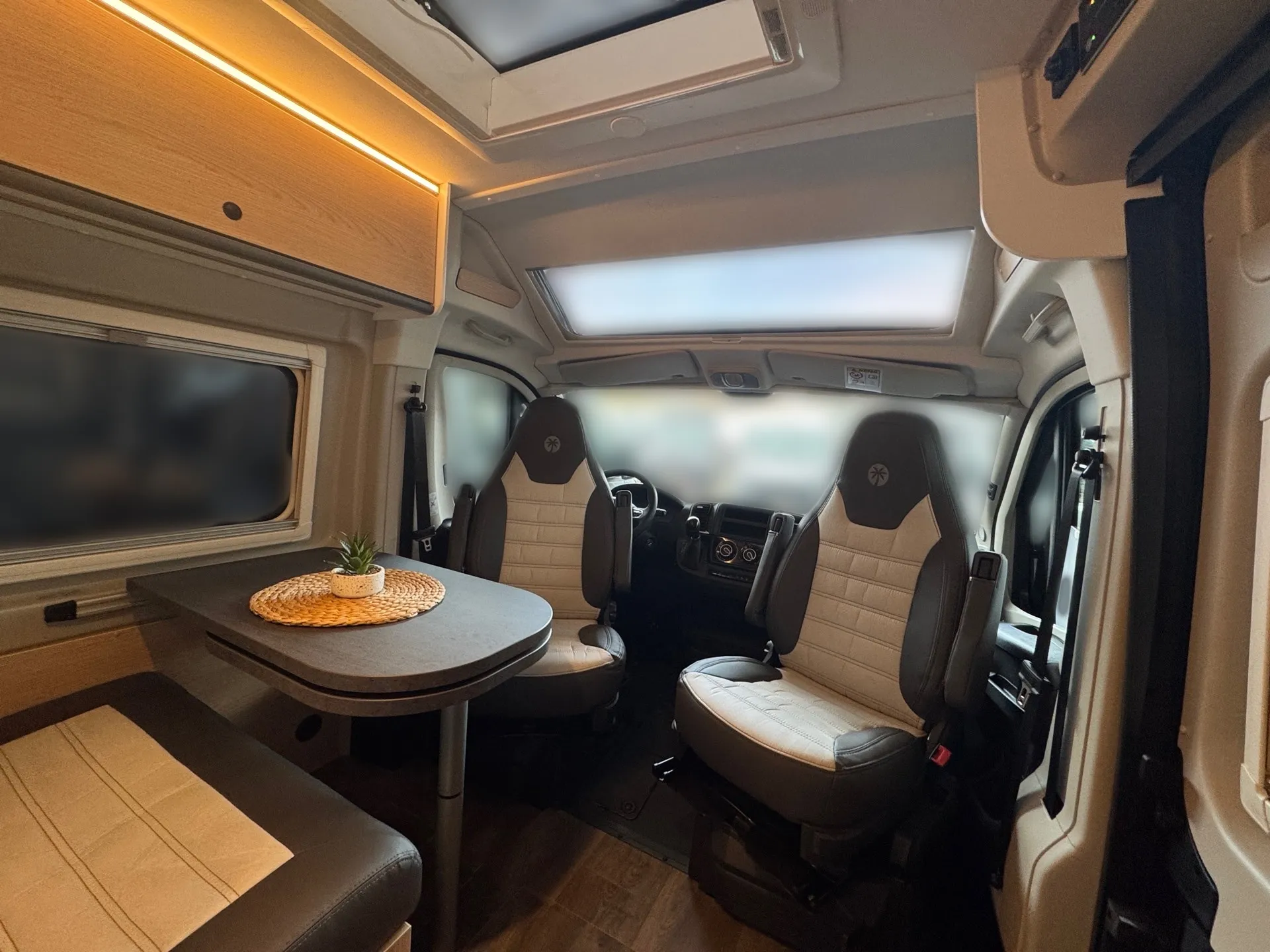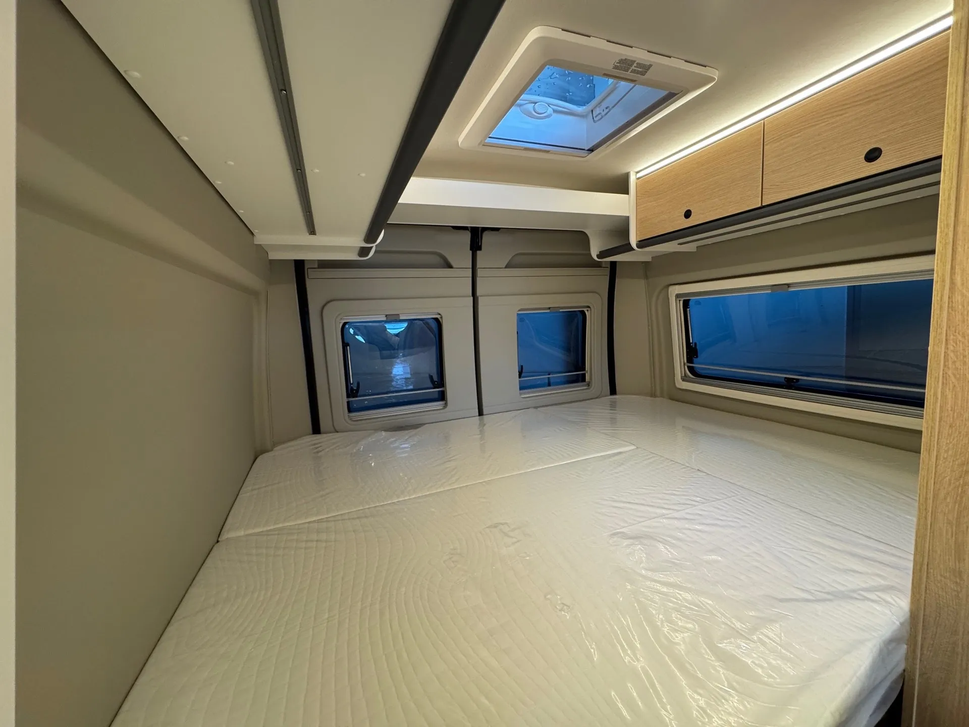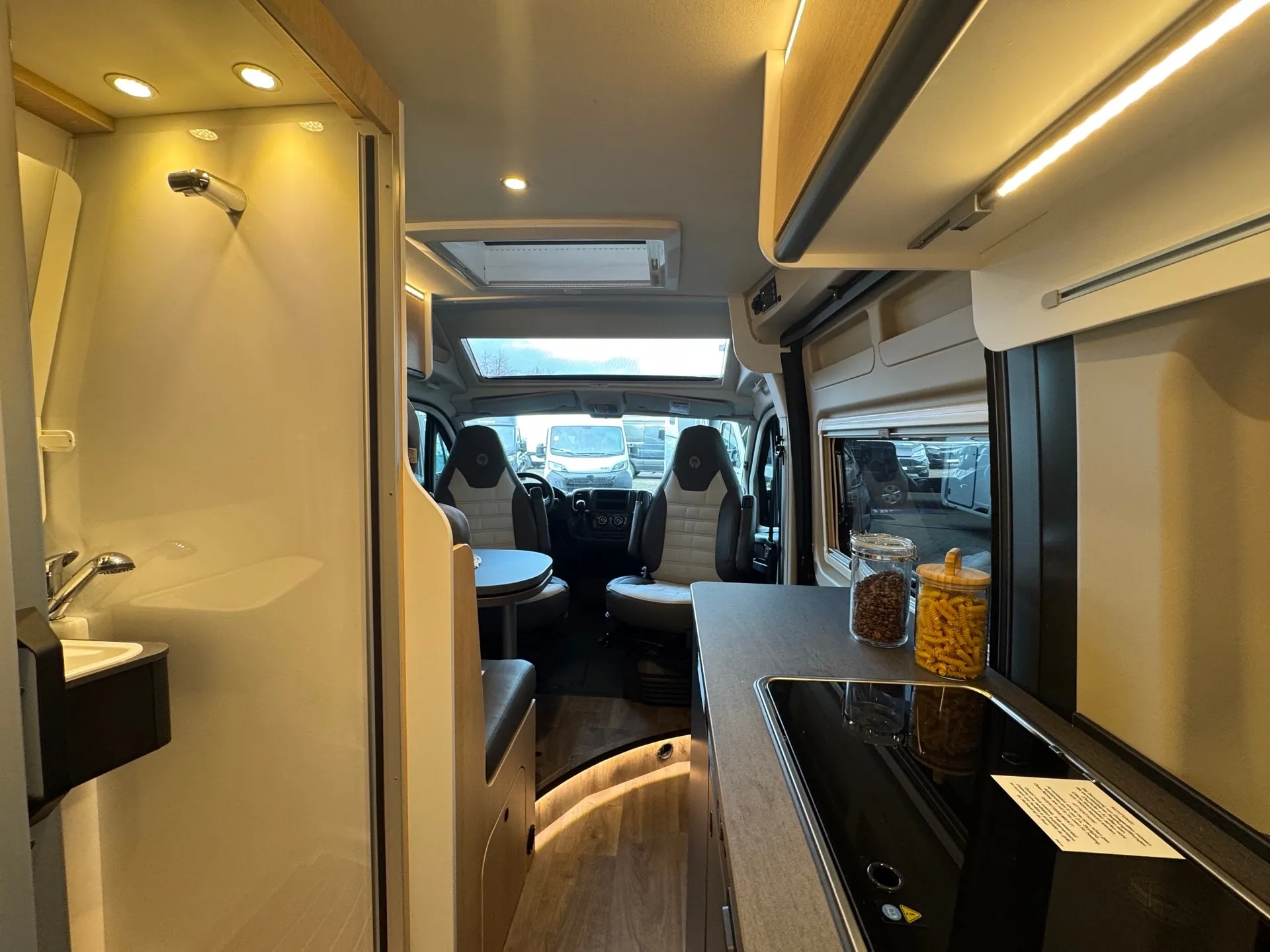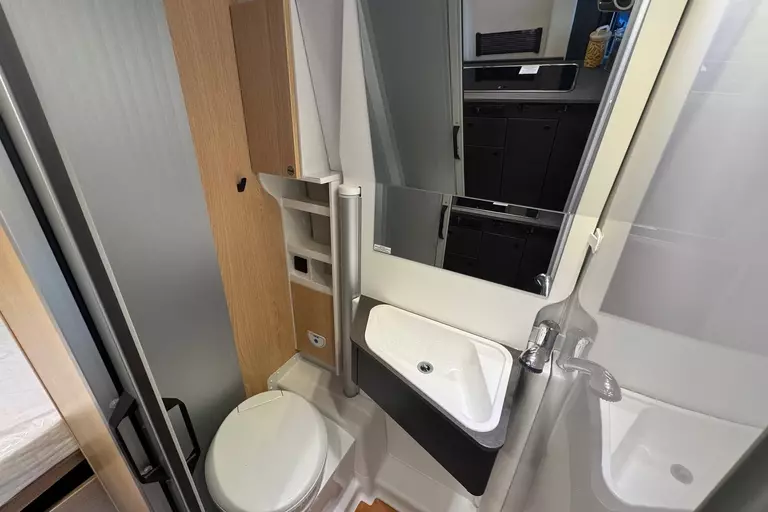 - Cliff X 600 package (Adventure livery, Adventure interior, LED lighting in overhead cabinet, overhead storage in the rear, Skyview, framed windows, variable bathroom, awning (black), panoramic roof hatch 70 x 50 cm, shower fittings, bathroom window, clothes rail in the wet room, wide entry step, swivel base for table extension at the seating area, painted bumpers, black skid plate, fog lights, leather steering wheel and gear knob, air vents with silver accents (Techno trim), 16" bi-color alloy wheels)