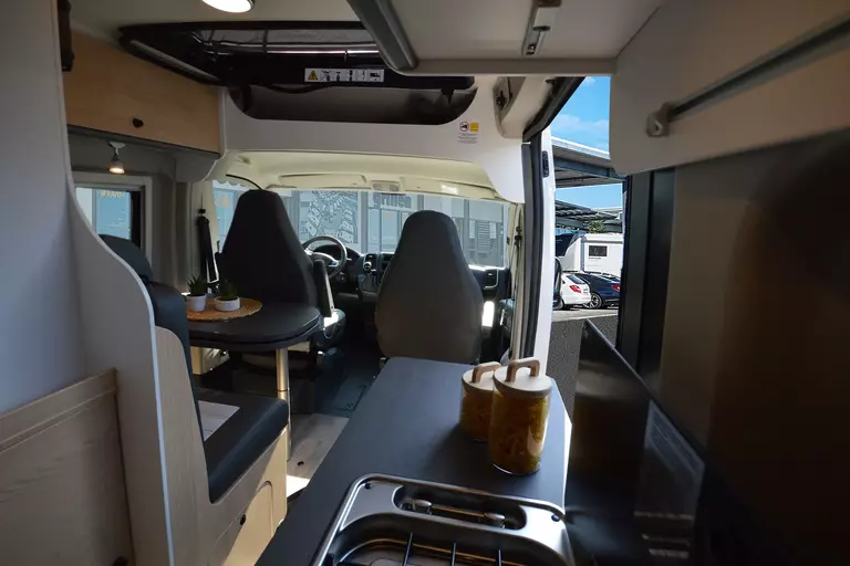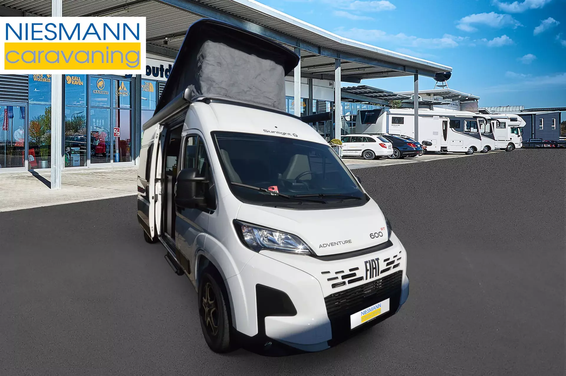 -Adventure Package 600 (Fiat White, Adventure decals, Adventure interior, black awning, 70 x 50 cm panoramic roof hatch, shower, bathroom window, clothes rail in the wet room, wide entry step, swivel base for extending the dinette table, painted bumpers, black skid plate, fog lights, leather steering wheel and gear knob, air vents with silver accents (Techno trim), 16" bi-color alloy wheels)