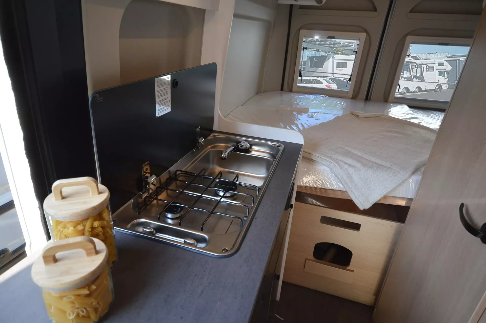 -Transverse guest bed in the living area