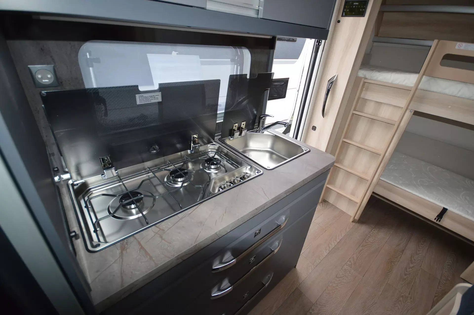 - Garage under bunk bed (not in conjunction with ALDE hot water heating system, drawing board under children's bed not included)
