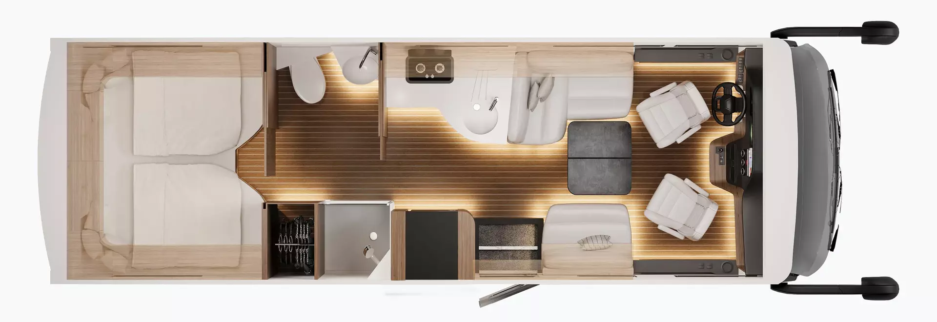 -Soundsystem (2 x 2-Wege-Lautsprechersystem im Fahrerhaus, 2 x 2-Wege-Lautsprecher im Wohnraum, Subwoofer, Soundprozessor)