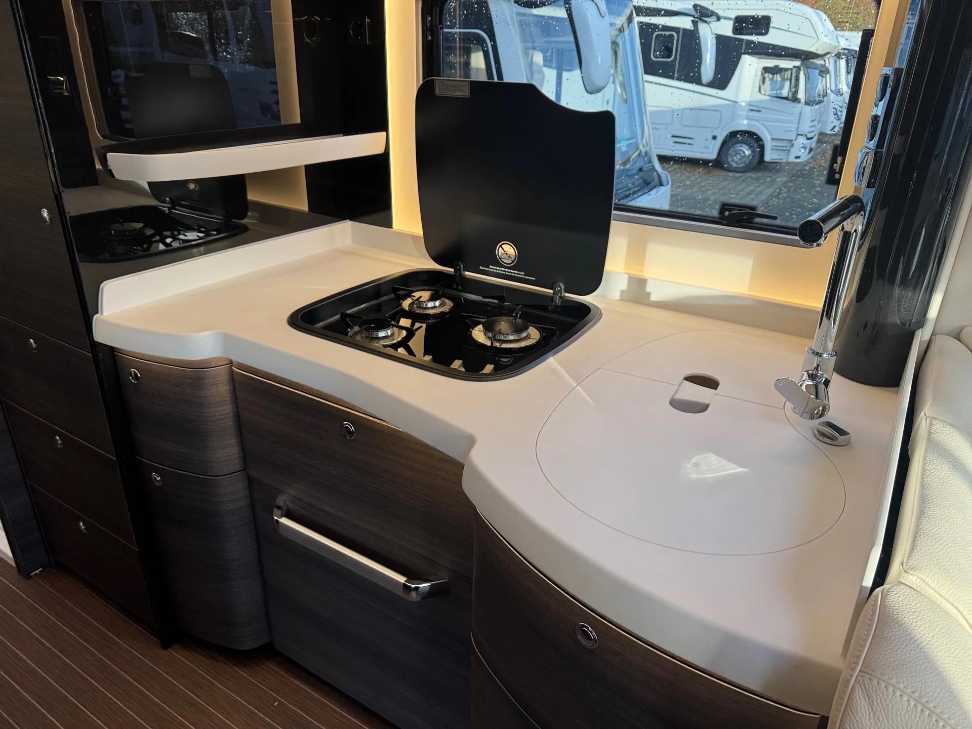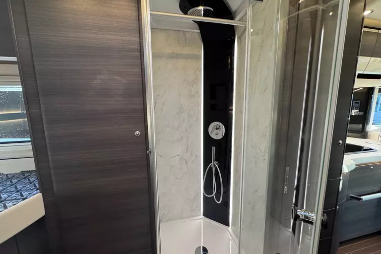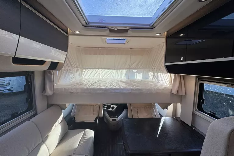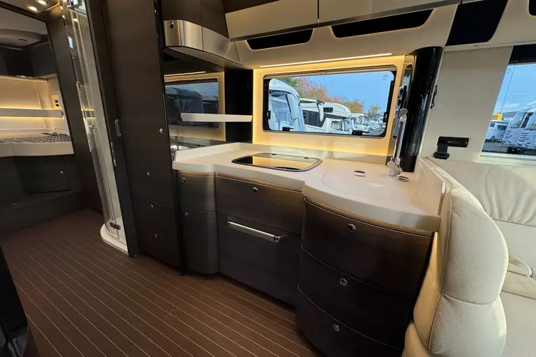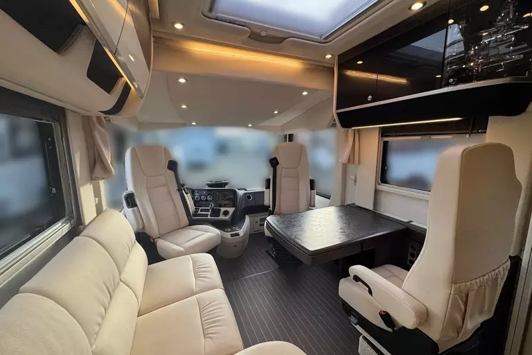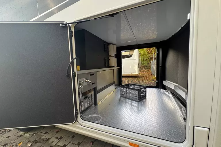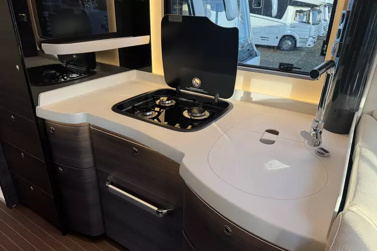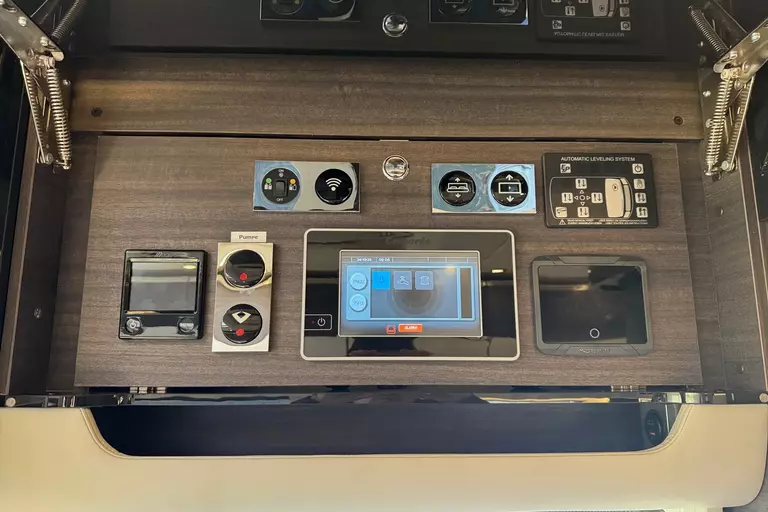 Praktische Alltagsfunktionen wie ein Kompressor-Kühlschrank, ein Li-Ionen-Batteriepaket, ein Solarpaket und eine Spülmaschine sorgen für Komfort. Durchdachte Entsorgungsfunktionen wie Umpump-Funktionen des Tanks, eine Kamera über elektrischen Ablassventilen und ein Wasserfiltersystem runden das Gesamtpaket ab.