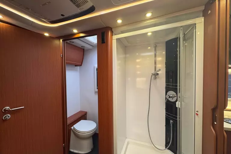 -SAT-Anlage elektrisch mit LED-Flachbildschirm im Oberschrank rechts, elektr. absenkbar
