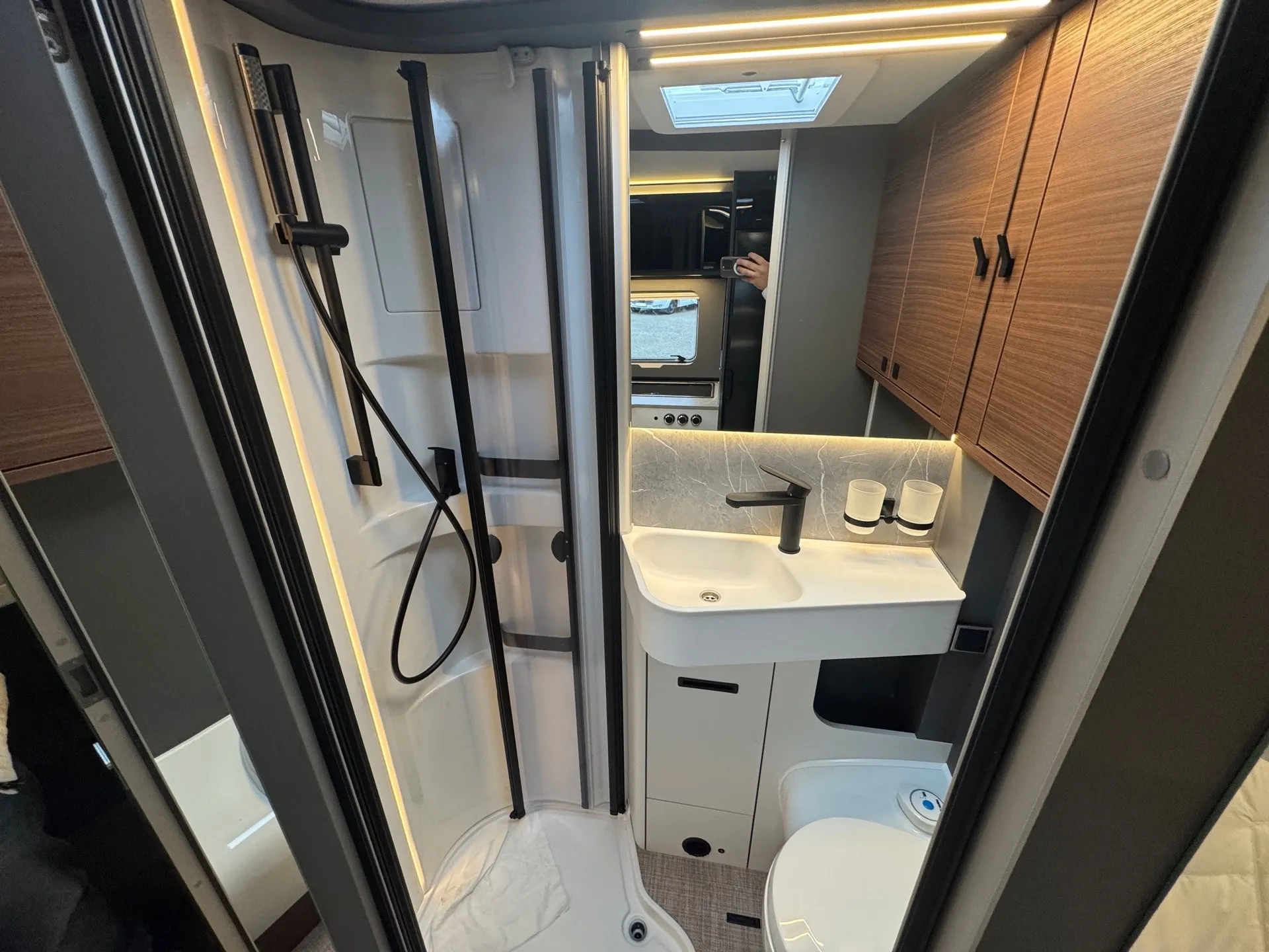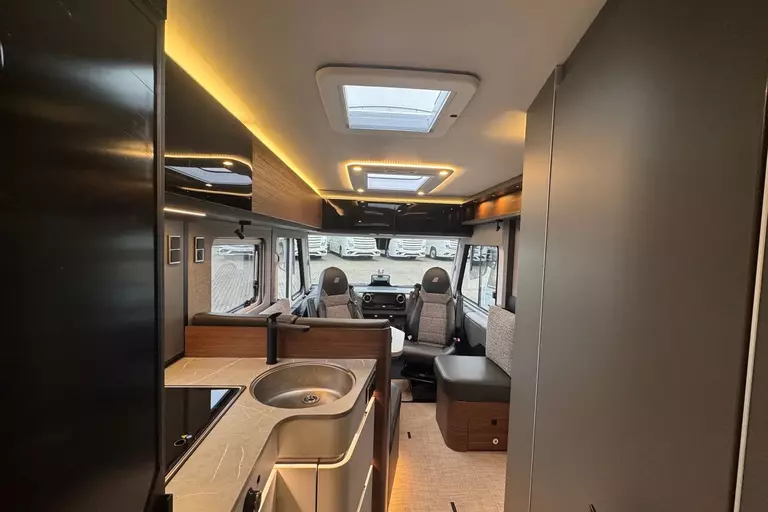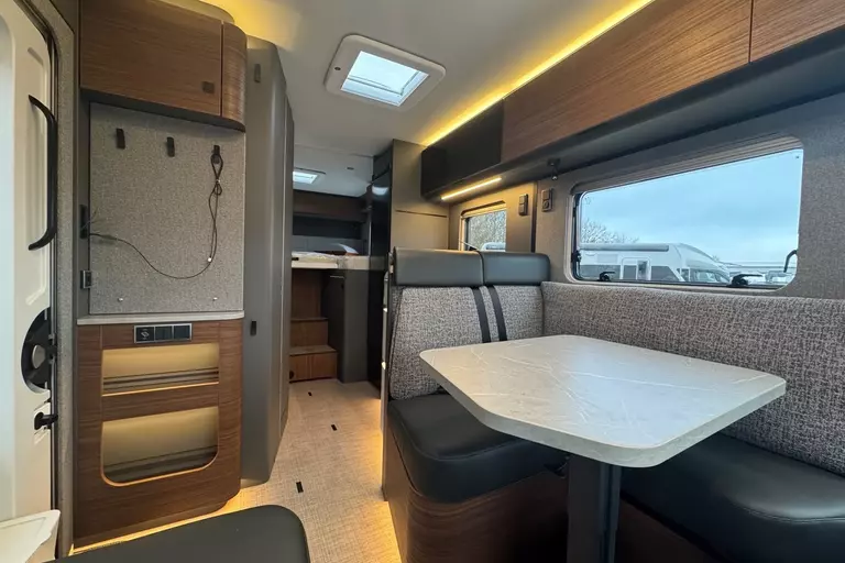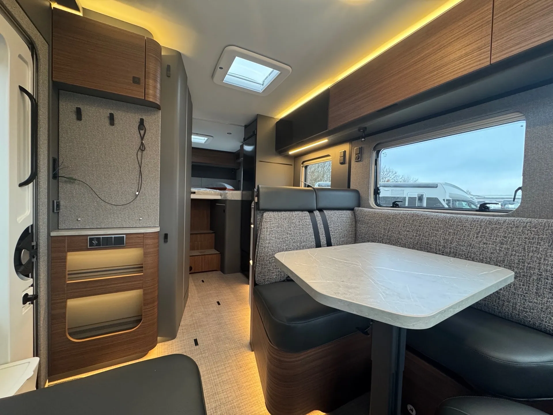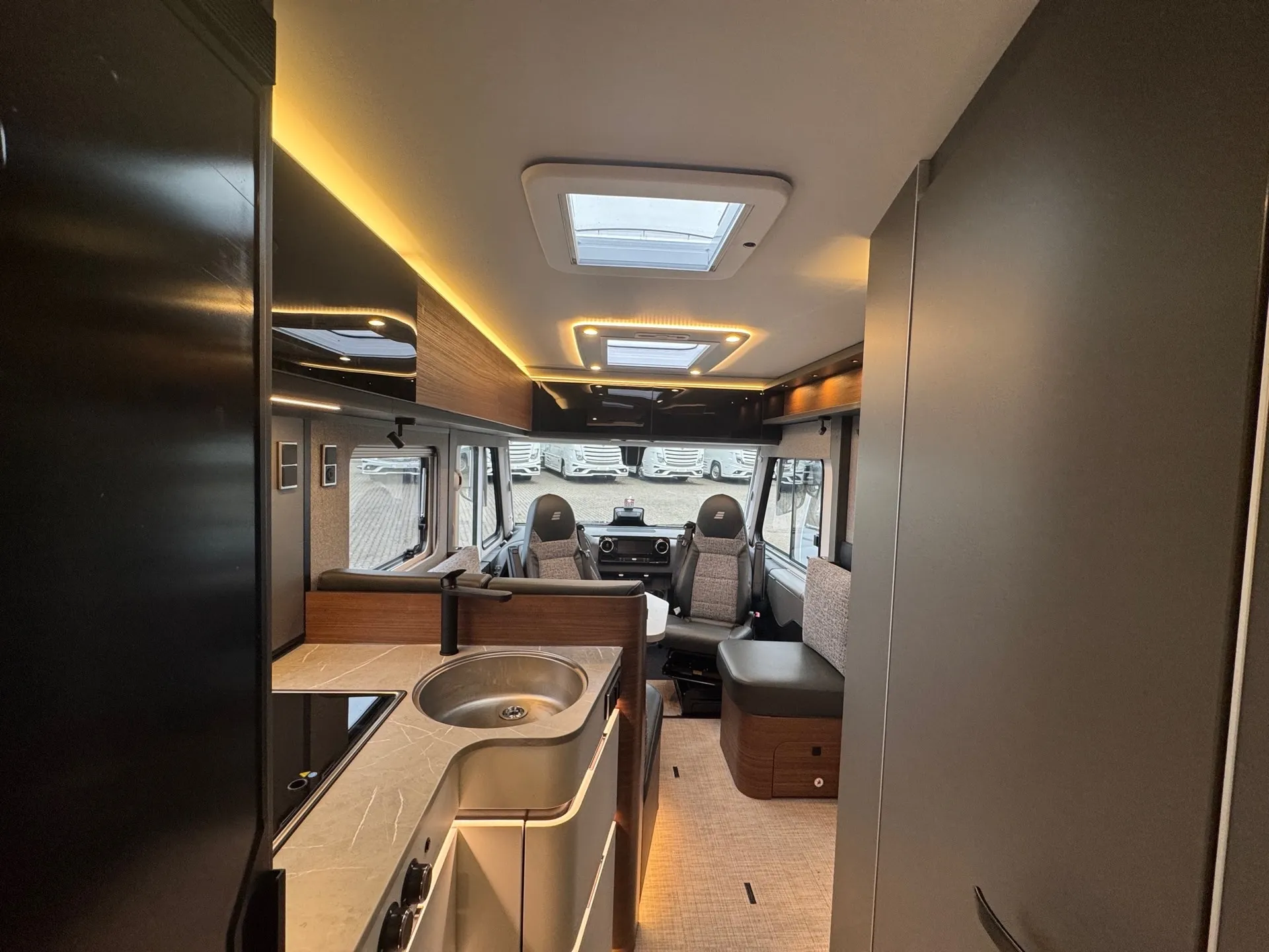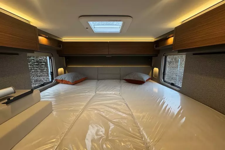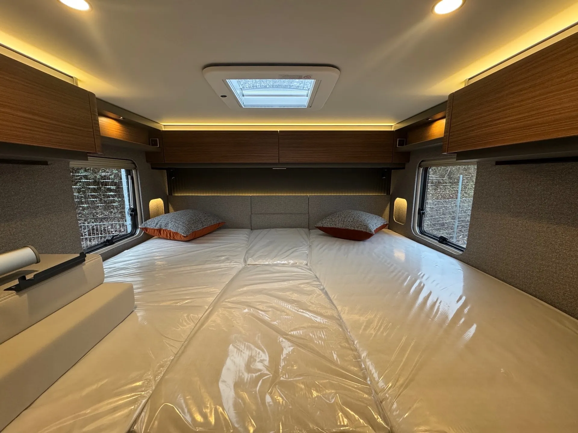 -Wohnkomfort-Paket (Filzverkleidung in Heckgarage, Spannbettlaken nach Maß für Heckbetten individuell an Matratzen angepasst, 4 Kissen mit Bezug, Ambient-Light-System: Mehr-Ebenen Lichtsystem mit dynamischer und individueller Steuerung der Beleuchtung (inkl. Lichttemperatur) sowie stimmungsvoller Sockelbeleuchtung, 4 x 230 V / 2 x Doppel-USB Zusatzsteckdosen)