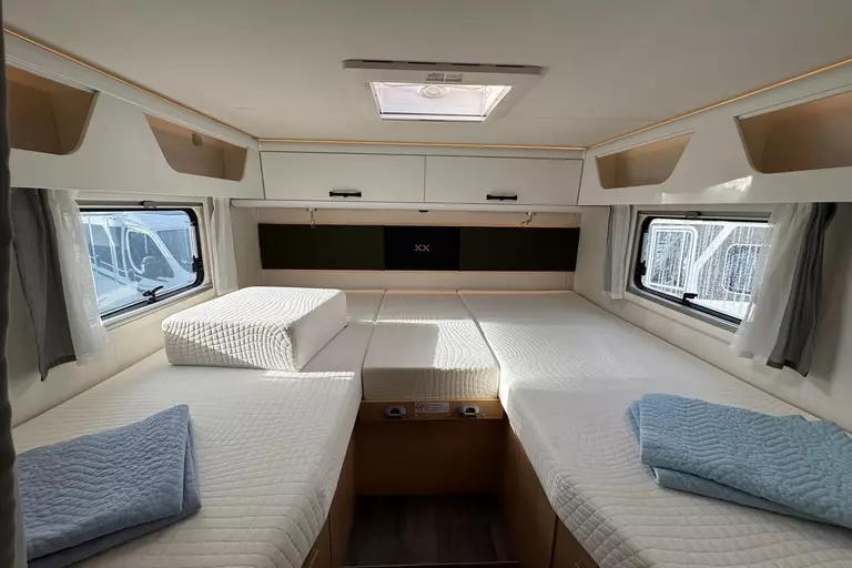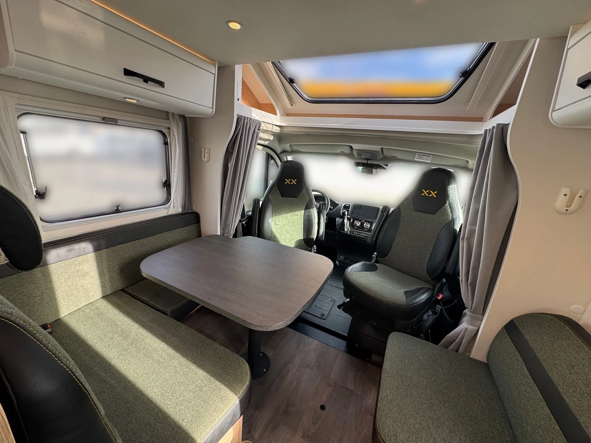 - Editionsausstattung XX 68 (Chassisfarbe Schwarz inkl. Seitenwand in Silberglattblech, XX Editionsbeklebung, Wohnwelt XX Edition, Mobiles Internet (WiFi / LTE Antenne inkl. Router), 22" Smart TV, Design Applikation Heck, Rahmenfenster, Fenster in Fronthaube, 2. Außenstauraumklappe (Größe modellabhängig), Großer Kühlschrank 156 l mit separatem Frosterfach 29 l, Bettenumbau Einzelbett zu Doppelbett, Paket One Black (Markise, Fahrradträger 3-fach), Bridge Light, Komfort Eingangstür mit Fenster, Fliegengittertür (einteilig), Panoramadachhaube 70 x 50 cm, Klarglasdachhaube 40 x 40 cm, Stoßfänger lackiert, Skid Plate Schwarz, Nebelscheinwerfer, Lenkrad & Schaltknauf in Lederausführung, Luftauslässe mit Applikationen Silber (Techno-Trim), 16" Alufelgen schwarz matt)