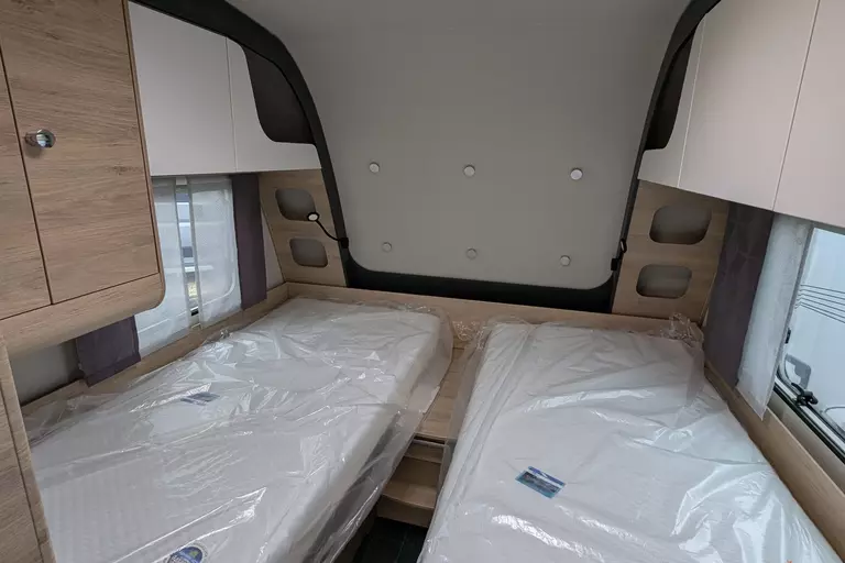 - Premium Interieur-Paket (TABBERT Komfort Schlafsystem mit flexiblem Tellerrost und WaterGEL-Matratze, Insektenschutztür, Deko-Paket Schlafen "PANTIGA": 4 Kissen und 2 Decken im Schlafbereich, Füllstandsanzeige für Frischwassertank)