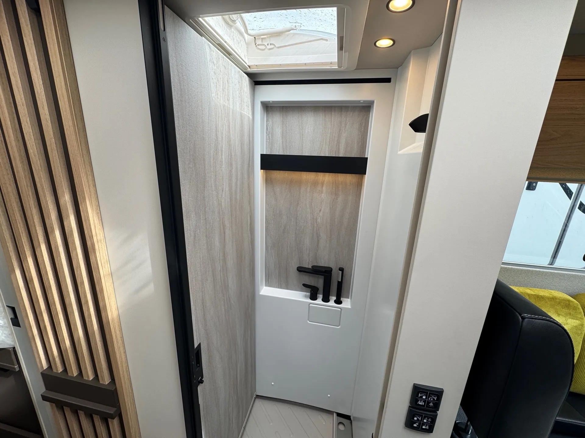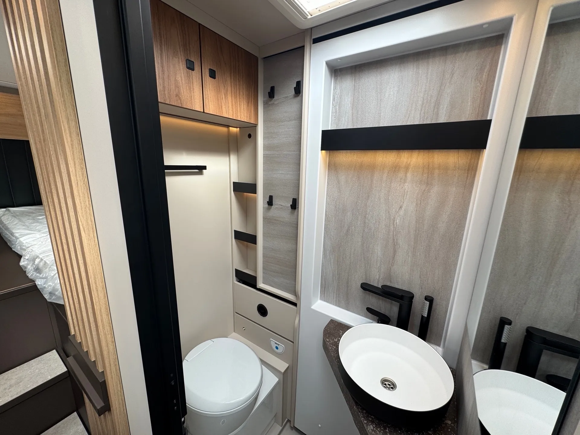 - Filz-Schiebetür zwischen Schlaf- und Wohnbereich