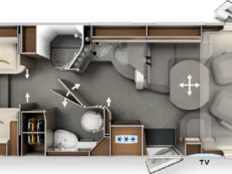 -TV-Paket Schlafraum (LE-Betten) bestehend aus: •Smart-LED-TV 24" Schlafraum, TV-Schrank bzw. Waschraumrückwand •TV-Schrank im Schlafraum mit TV-Auszugssystem und Anschluss-Set