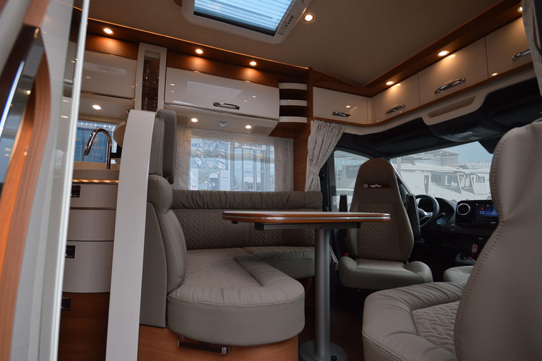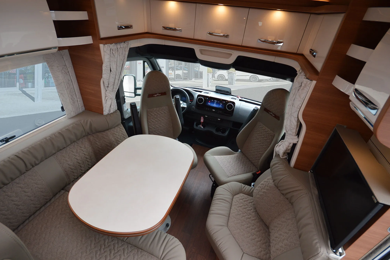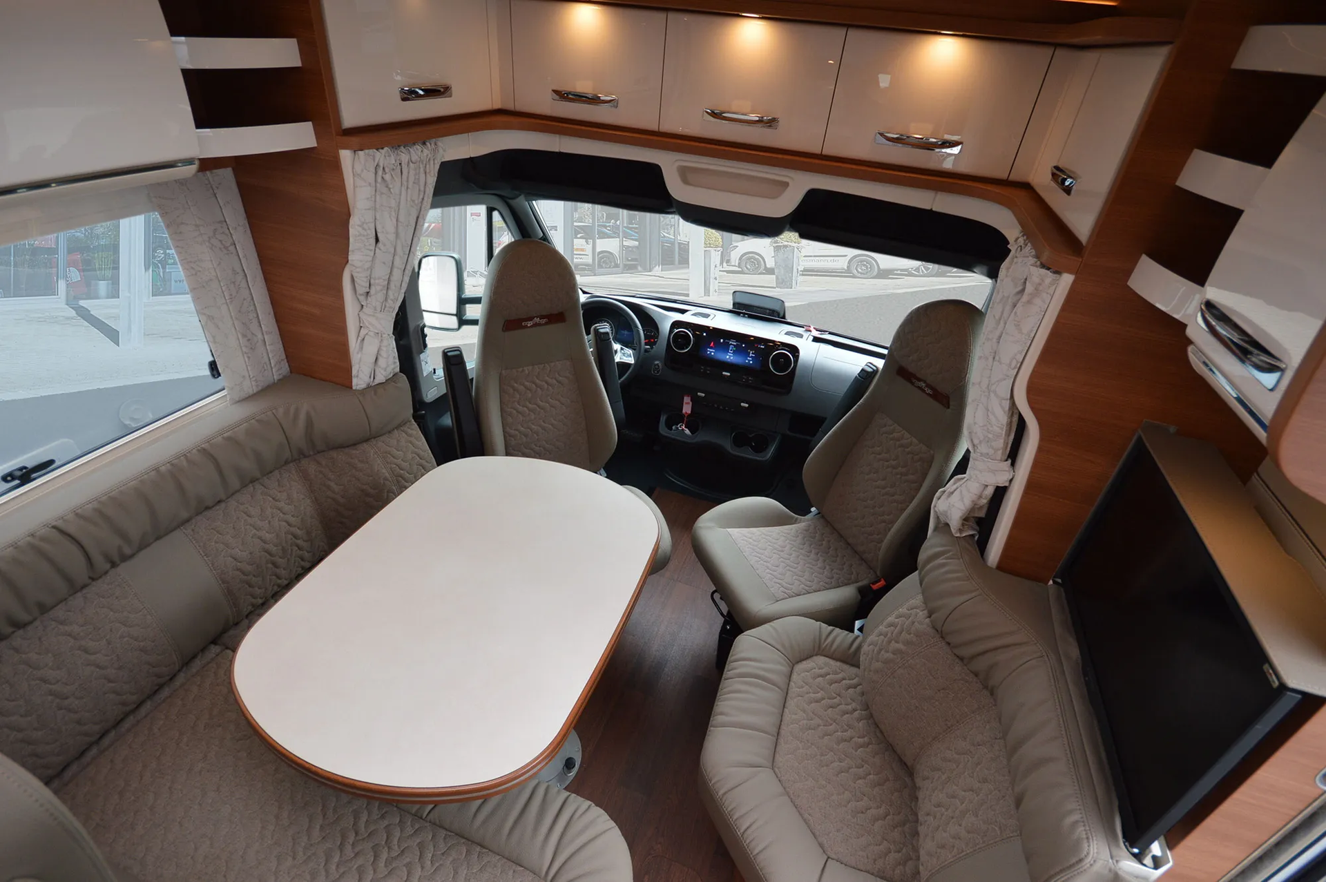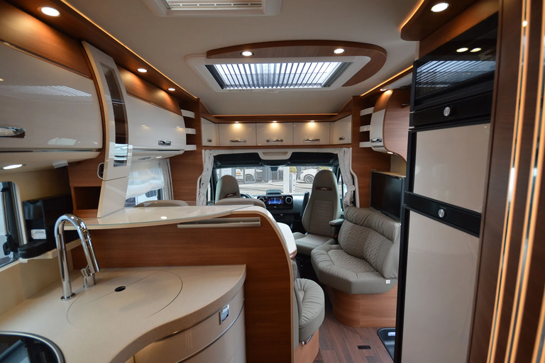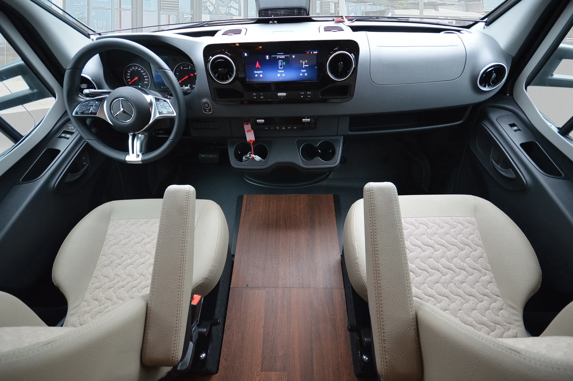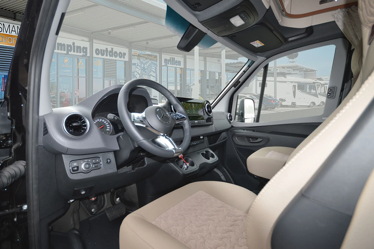 -Super-Paket Mercedes (Halbautomatische Klimaanlage Tempmatik, Tempomat, Ladebooster, Kraftstofftank 92 Liter, Vorderachse mit erhöhter Traglast, Lederlenkrad mit Option Multifunktionstasten (bei Schaltgetriebe inkl. Leder-Schalthebel), Kombiinstrument mit Farbdisplay, Regensensor, Elektrische Feststellbremse, Wärmedämmendes Glas mit Bandfilter an der Frontscheibe, Fahrerhauskomfortsitze mit Neigungs- und Höhenverstellung (vorn / hinten), Fahrerhausverdunklungssystem, Plissee an Seitenscheiben und Frontscheibe, Kurbel-Heckstützen zur Wankstabilisierung im Stand, MBUX 10,2" Multimedia inkl. Navigation und DAB+, Verkehrszeichenassistent, XL-Aufbautür ?premium two 2.0? (Breite 63 cm) mit Doppelverriegelung, Fenster- und Insektenschutzrollo, Zentralverriegelung Fahrerhaustüren und Aufbautür mit Funktion ?coming home?, Rollergaragen-Upgrade mit Nadelfilz, Gepäcknetzen, SOG-Toilettenentlüftung über Dachkamin, Truma DuoControl CS, Design-Barschrank mit Gläserhalter und Glas-Set über Küche, USB-Steckdose im Dachstauschrank über Heckbett, Vorbereitung Solaranlage, Vorbereitung Sat-Anlage, Vorbereitung Rückfahrkamera (Einzellinse), Rückfahrkamerasystem mit Einzellinse)
