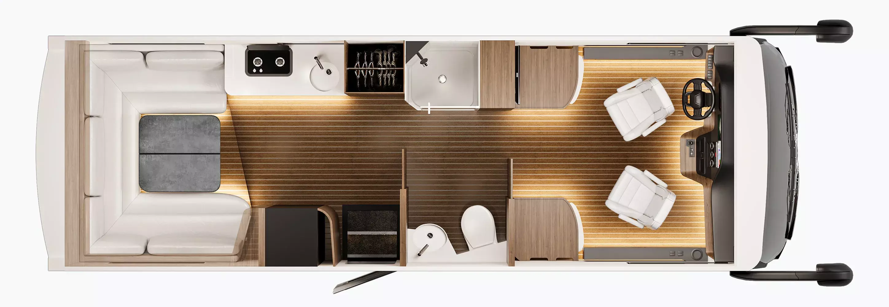 -Soundsystem (mit 2x 2-Wege-Lautsprecher im Fahrerhaus, Centerspeaker im Fahrerhaus, 4x 2-Wege-Lautsprecher im Wohnraum, Aktiv-Subwoofer, DSP-gesteuerter Verstärker und fahrzeugspezifische Klangabstimmung)