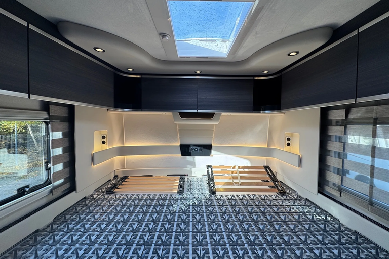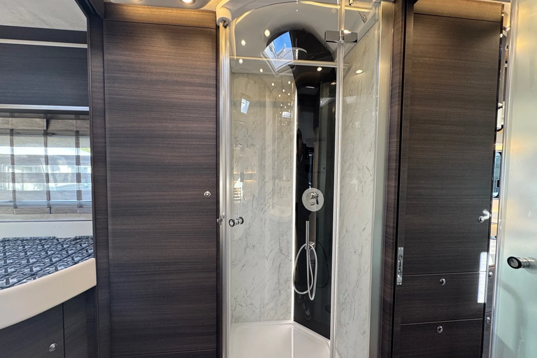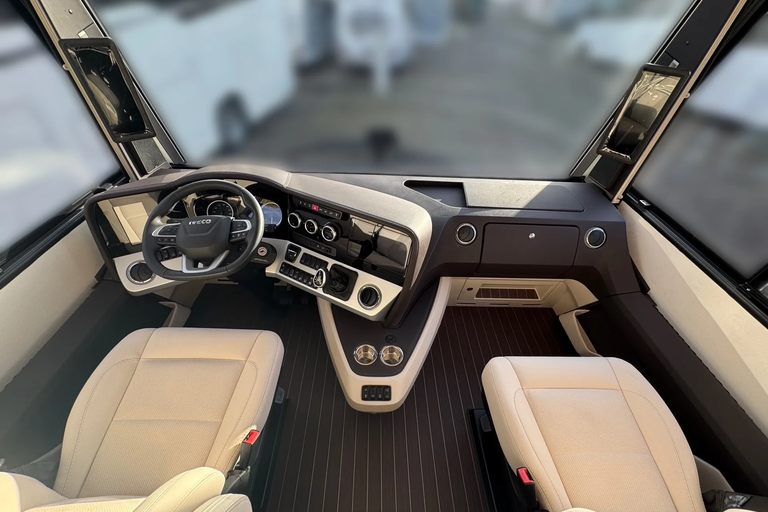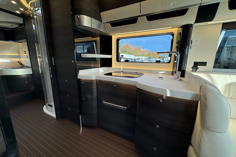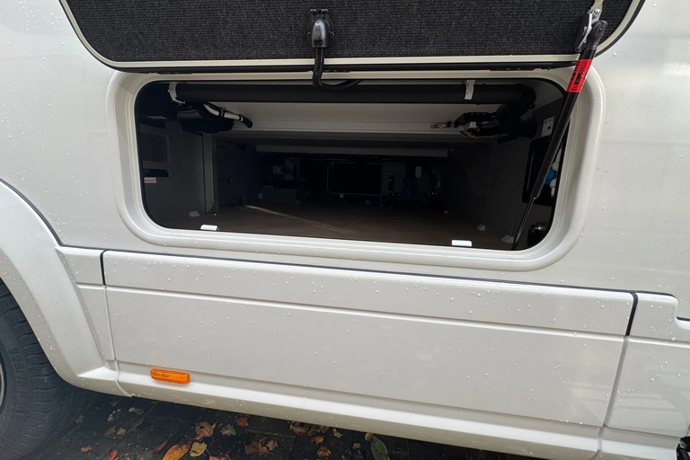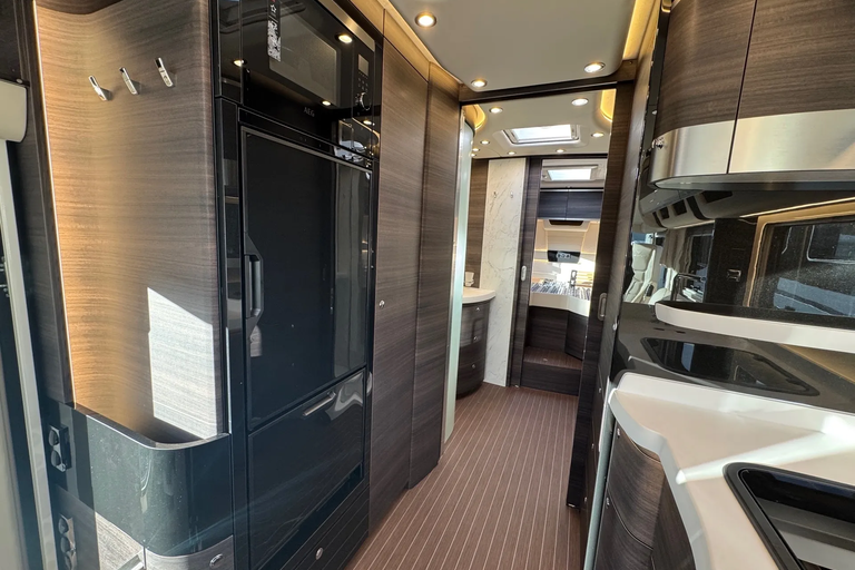 Praktische Alltagsfunktionen wie ein Kompressor-Kühlschrank, ein Li-Ionen-Batteriepaket, ein Solarpaket und eine Spülmaschine sorgen für Komfort. Durchdachte Entsorgungsfunktionen wie Umpump-Funktionen des Tanks, eine Kamera über elektrischen Ablassventilen und ein Wasserfiltersystem runden das Gesamtpaket ab.