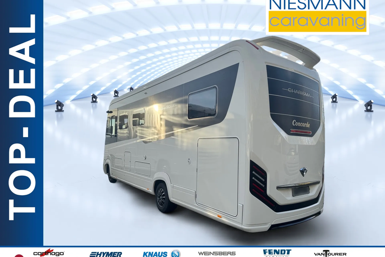 Bei Kauf dieses schönen Concorde Charisma erhalten Sie im Rahmen unserer 70-Jahre-Niesmann-Frühjahrsaktion die original Concorde Anhängerkupplung (starr, Anhängerkupplung mit Anhängelast max. 3.500 kg, abhängig von gewählter Auflastung) im Gegenwert von 3.145 EUR kostenfrei geliefert und eingebaut. So profitieren Sie doppelt: vom angebotenen Preisnachlass und unserem Jubiläums-Geschenk der gratis Anhängekupplung.