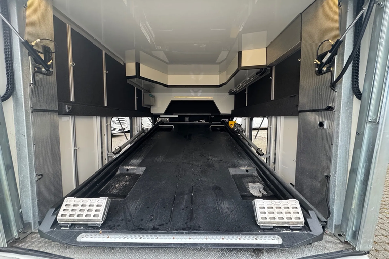 -Elektrische PKW-Schiebeplattform anstatt Seilwinde und Auffahrrampen (Garagenausführung für Fiat 500 + Abarth (Modell 2014))