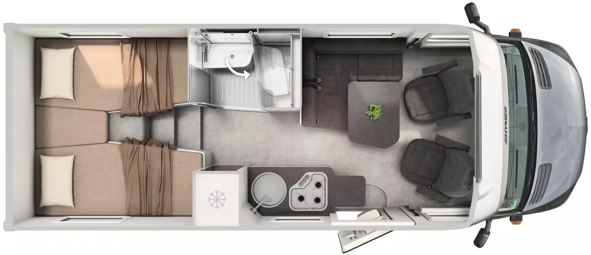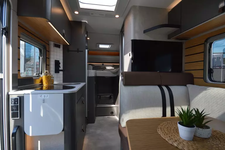-Bettenbau für Komfort L-Sitzgruppe inkl. Zusatzpolster und absenkbarem Tisch unter Einbeziehung des Fahrersitzes