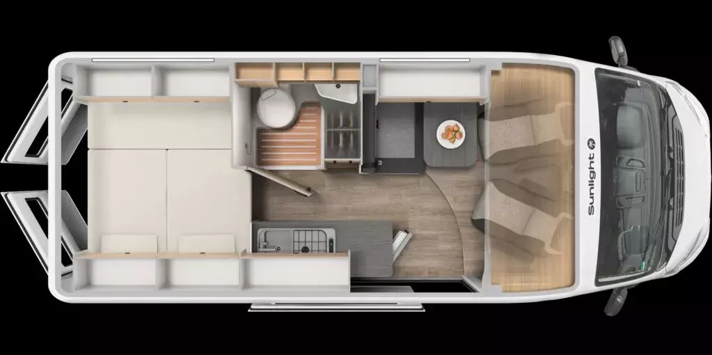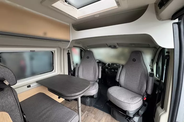 - Basic Paket (Panoramadachhaube 70x50cm, Duschausstattung, Fenster im Bad, Kleiderstange Nasszelle, breite Einstiegstufe, Tischerweiterung an Sitzgruppe)
