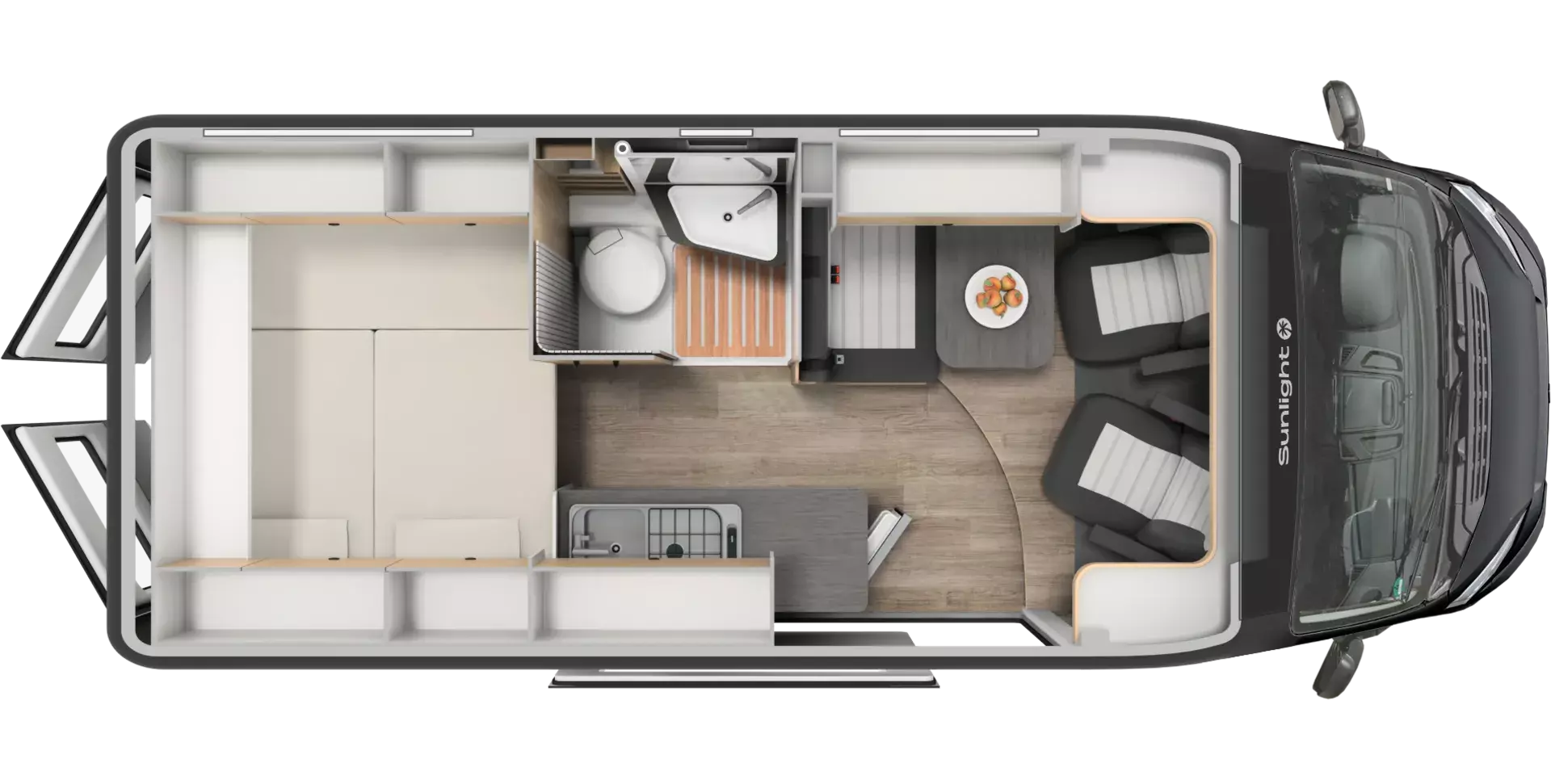 - Cliff X Ausstattung 600 (Adventure Beklebung, Wohnwelt Adventure, LED Beleuchtung Dachschrank, Dachstauschrank Heck umlaufend, Skyview, Rahmenfenster, Variobad, Markise (schwarz), Panoramadachhaube 70 x 50 cm, Duschausstattung, Fenster im Bad, Kleiderstange in der Nasszelle, Breite Einstiegsstufe, Drehplatte für Tischerweiterung an der Sitzgruppe, Stoßfänger lackiert, Skid Plate Schwarz, Nebelscheinwerfer, Lenkrad & Schaltknauf in Lederausführung, Luftauslässe mit Applikationen Silber (Techno-Trim), 16" Alufelgen Bi-Color)
