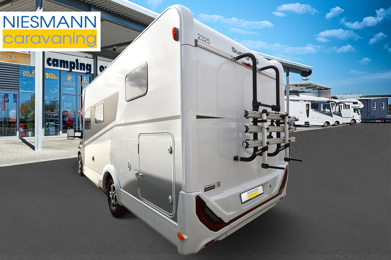 Wir bieten an: Jung-gebrauchtes Reisemobil, Scheckheft-gepflegt nach Werksvorgabe und mit Dichtigkeitsgarantie. Mehrwertsteuer ausweisbar. Ehemaliger Neupreis 86.421 EUR.
