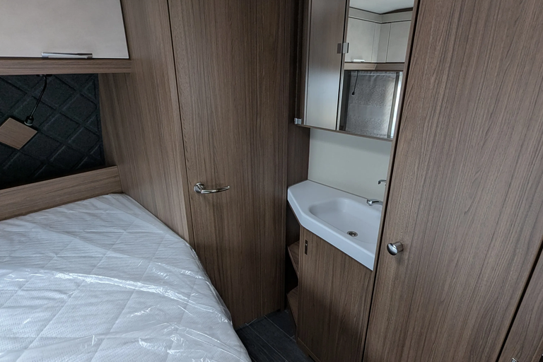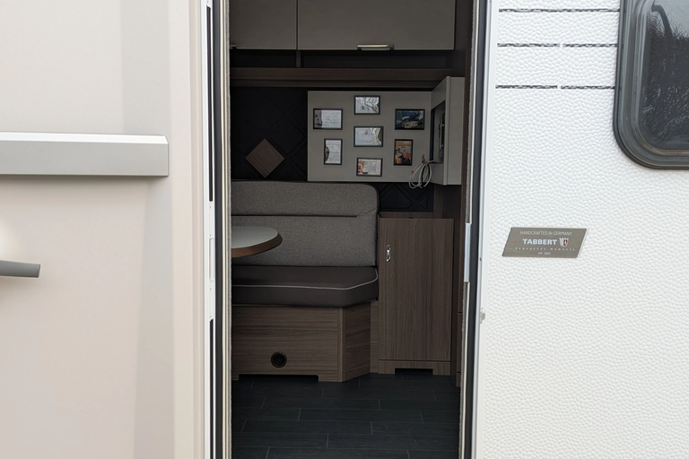- Premium Interieur-Paket I (Deko-Paket Schlafen "CAZADORA": 4 Kissen und 2 Decken im Schlafbereich, TABBERT Komfort Schlafsystem mit flexiblem Tellerrost und WaterGEL-Matratze, Insektenschutztür, Füllstandsanzeige für Frischwassertank)