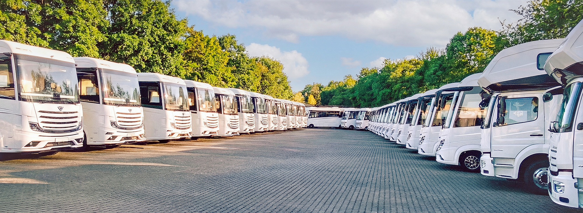 Dans notre cour, vous pouvez découvrir en permanence toute la gamme de produits Concorde, du Credo, Carver, Cruiser Daily et Cruiser Atego au Centurion Actros, en passant par le Charisma, Liner Atego et Liner Actros. Dans presque toutes les séries, différents modèles sont également disponibles comme véhicules d'exposition. Nous proposons ainsi la plus grande exposition permanente Concorde d'un concessionnaire, avec encore plus de choix que lors des salons ou directement à l'usine.
