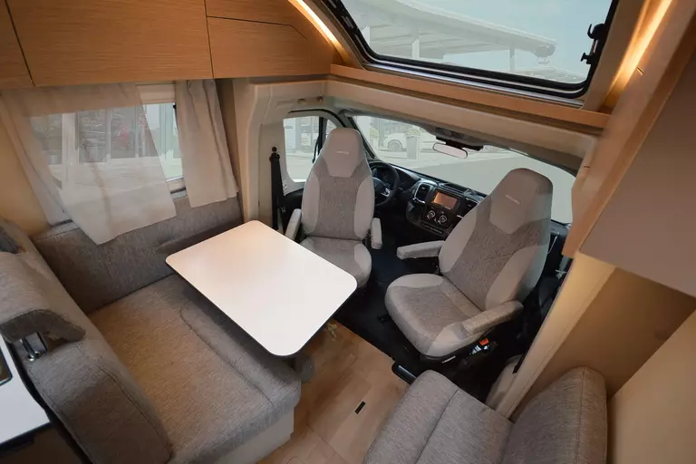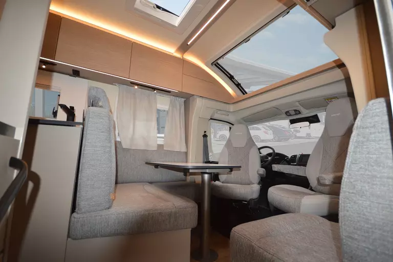 - Komfort Paket 1 (Fahrerhausverdunkelung, Cassettenplissees Front- und Seitenscheiben, Garagenklappe in Fahrtrichtung links, Sun-Roof (Aufstellbar, mit Verdunkelung und Fliegenschutz), Aufbautür breite Ausführung (mit Fenster und Zentralverriegelung), Alurahmenfenster, Dachfenster 50 x 70 cm mit Verdunkelungsrollo und Fliegenschutz im Wohnbereich, Elektrisch ausfahrbare Einstiegsstufe, Licht Paket, 7 Display für My Bürstner App)