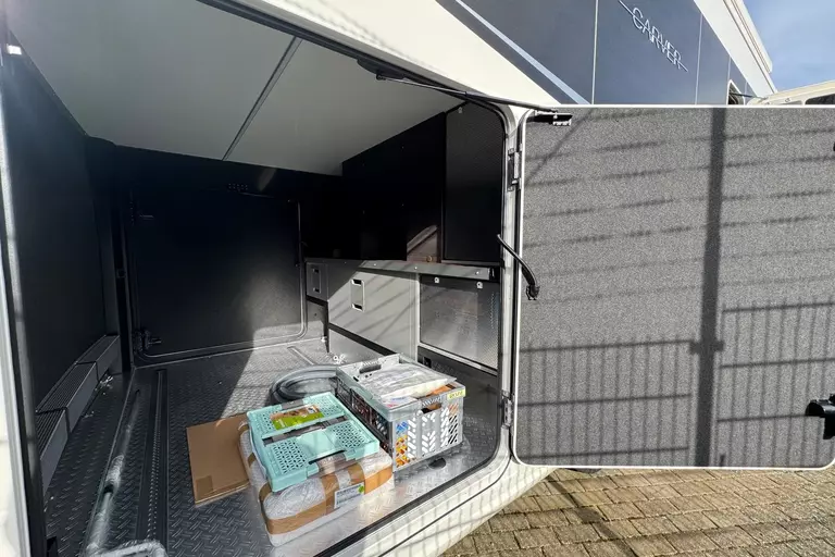 -Verzurrsystem mit Airlineschienen und 4 Spannösen in Heckgaragenboden eingelassen