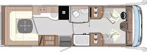 Sat.-TV-Anlage mit Full HD LED Smart TV 24" Rundsitzgruppe rechts auf Sideboard, Full HD LED Smart TV 24" auf Mediaschrank hinter Fahrersitz, 5G-WLAN Router, Navigationssystem mit Reisemobil-Software und Touchscreen-Bildschirm 9", integriertes Radio mit DAB+- und Freisprecheinrichtung für Telefon mit Bluetooth, Radio im Wohnraum mit Bluetooth, MP3- und USB-Anschluss und Soundsystem mit Subwoofer und Zusatzlautsprecher, Soundsystem im Fahrerhaus, Steckdosenkombination, 230 V / 12 V / Antenne im Doppelboden mit Bodendurchführung, Position: im Außenstaufach rechte Fahrzeugseite (für wahlweisen TV-Außenanschluss) (Sat-Ausgang), 2x 60W Hochleistungs-USB C Steckdose