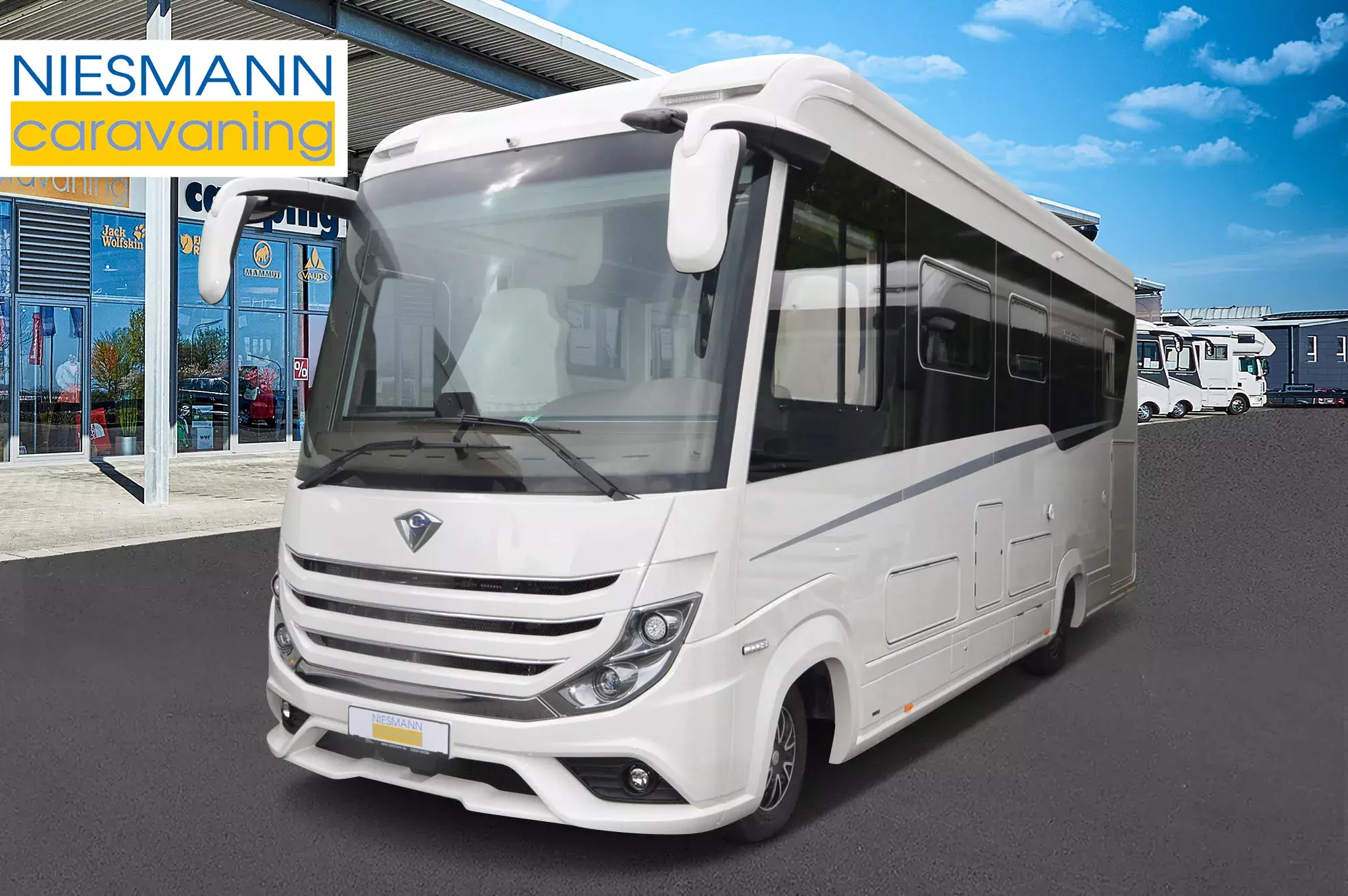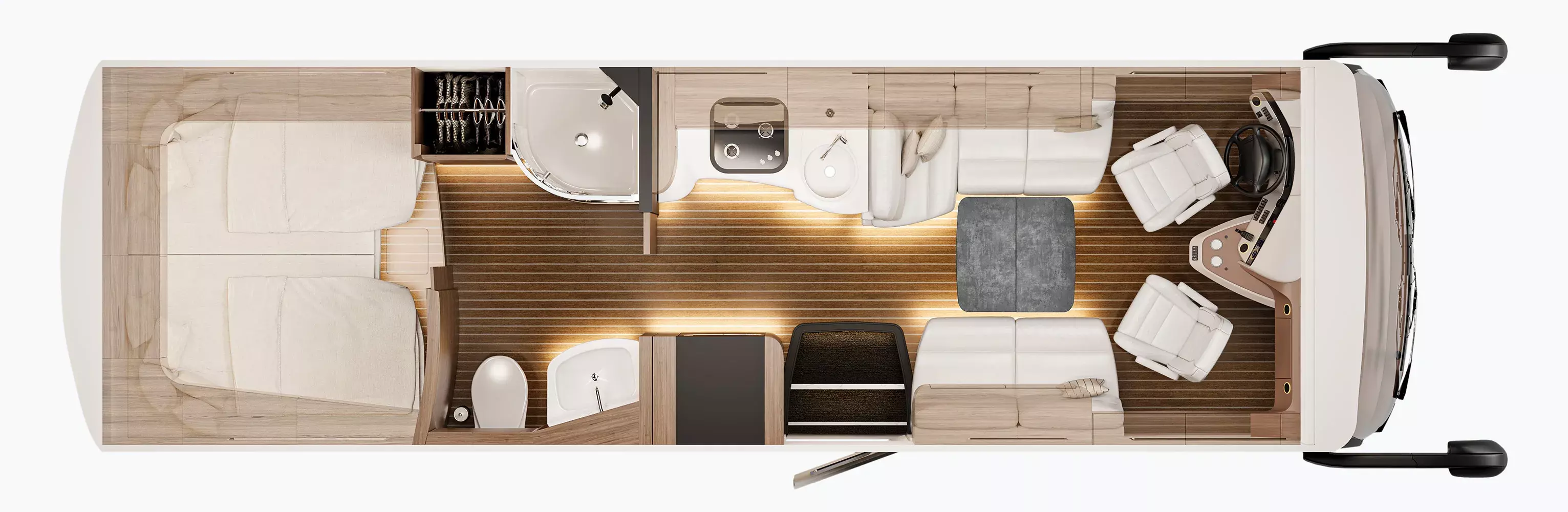 -Centurion Style-Paket 2 (Möbelbau in Atlas Zeder mit Dachschrank-Möbelfronten in "high gloss" Senosan creme weiß und Griffleisten in Edelstahl-Optik, Außendekor "Centurion Style" im brushed Folien Design inklusive Schriftzüge, Aufbaufenster mit Tönung in privacy black, Jalousien Wohnraum in Holzoptik, Objektbodenbelag Soft-Walk im Yacht-Style, Shadow Line LED Hauptscheinwerfer und im Stoßfänger integrierte LED-Nebelscheinwerfer, sowie statisches Kurvenlicht. Tagfahr-Blinklicht mit LED)