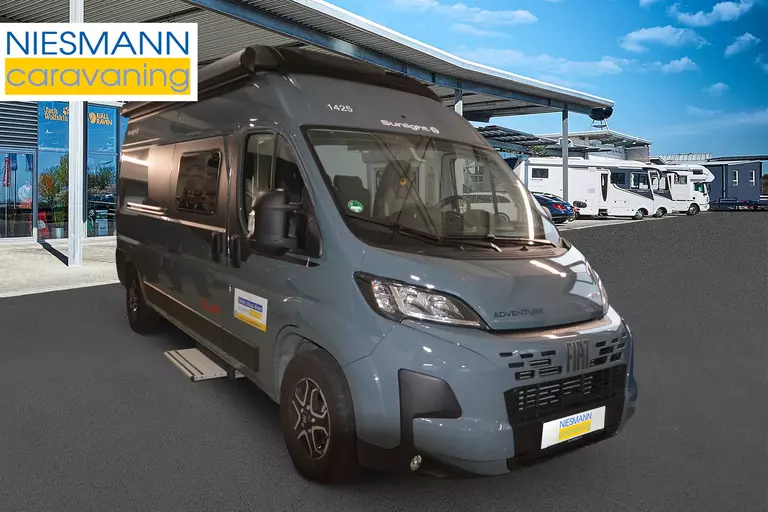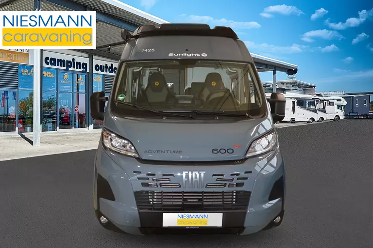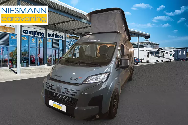 - Editionsausstattung Adventure 600 (Adventure Beklebung, Wohnwelt Adventure, Markise (schwarz), Panoramadachhaube 70 x 50 cm, Duschausstattung (Brausekopf ausziehbar, Duschvorhang, Führungsschiene, Brausehalter), Fenster im Bad, Kleiderstange in der Nasszelle, Breite Einstiegsstufe, Drehplatte für Tischerweiterung an der Sitzgruppe, Stoßfänger lackiert, Skid Plate Schwarz, Nebelscheinwerfer, Lenkrad & Schaltknauf in Lederausführung, Luftauslässe mit Applikationen Silber (Techno-Trim), 16" Alufelgen Bi-Color)