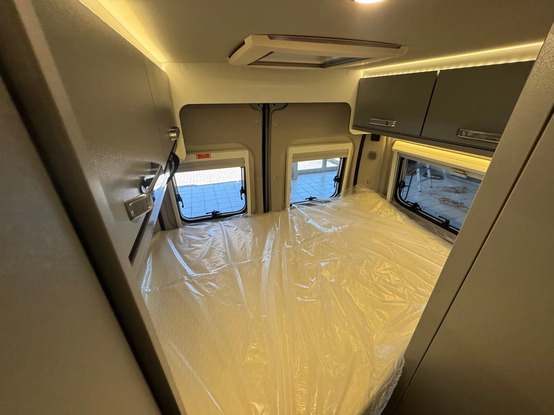 - Ausstellfenster Heck, mit Insektenschutz und Verdunklung (rechts)