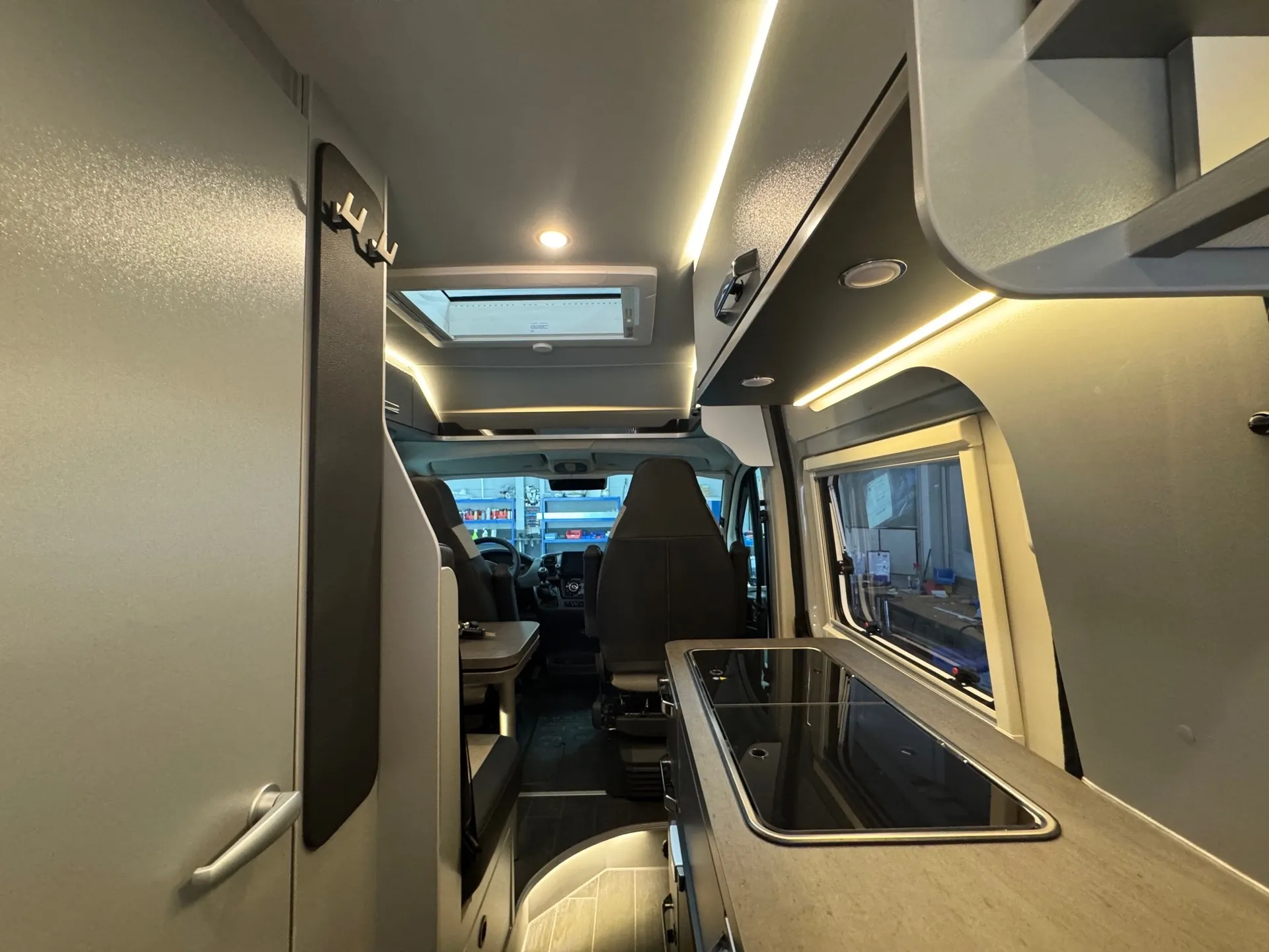 - Regenrinne über der Schiebetür mit LED (dimmbar)