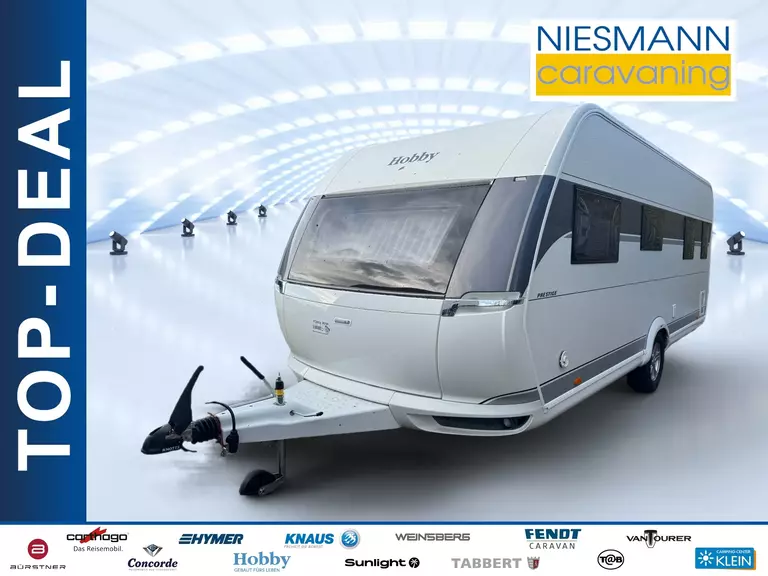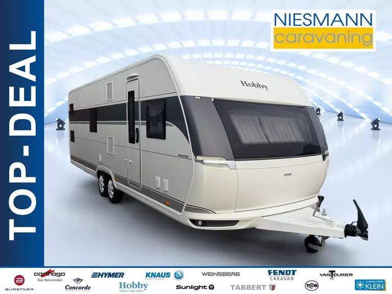 De Prestige-modellen zijn uitgerust met het Hobby-uitrustingspakket, inclusief een extra brede toegangsdeur, een insectenwerende deur en een KNOTT ANS oplooprem. Het interieur biedt comfortabele koudschuimmatrassen, grote wandkasten en een roestvrijstalen spoelbak en driepits gaskookplaatcombinatie. Een grote Dometic koelkast, TV dressoirs met een glazen kast en een centraal bedieningspaneel bij de ingang zijn ook geïntegreerd.
