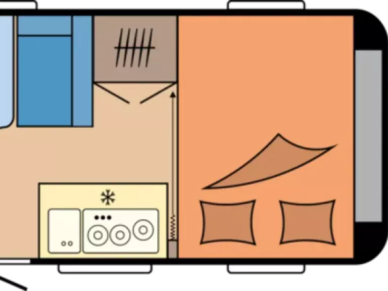 De Hobby Maxia biedt drie indelingen voor maximaal zeven personen. De indelingen zijn slim ontworpen om ruimte en bewegingsvrijheid te maximaliseren, met opties voor queensize bedden, eenpersoonsbedden en multifunctionele kinderbedruimtes om aan verschillende behoeften te voldoen.