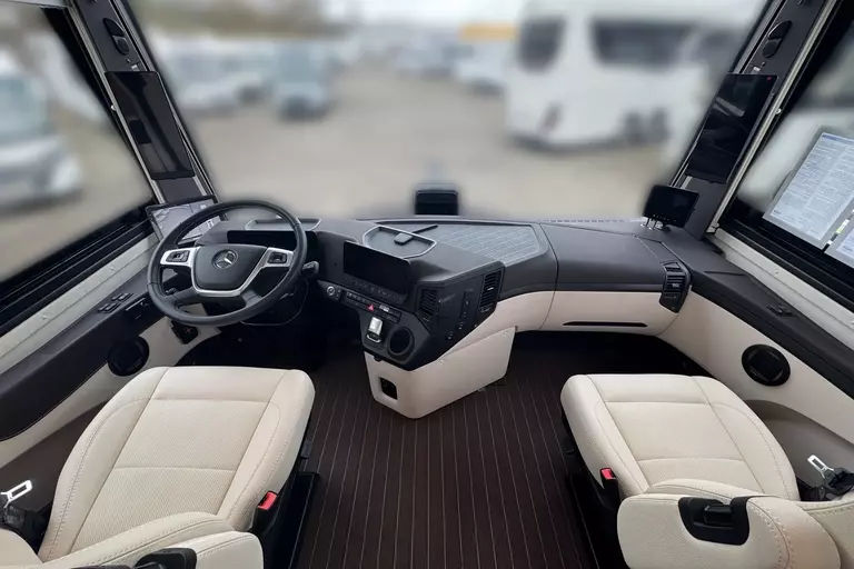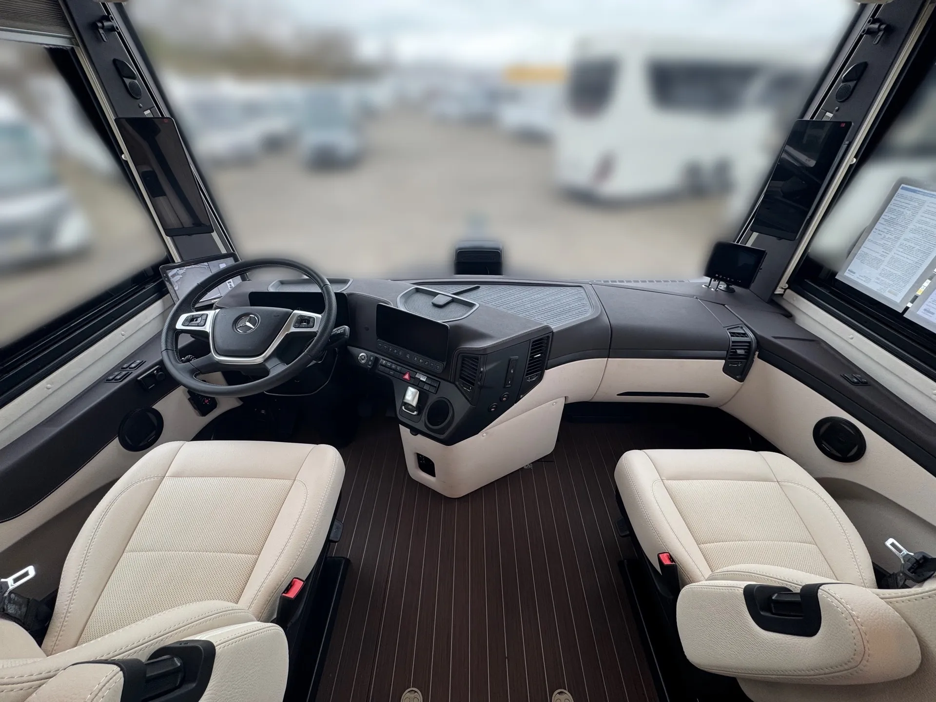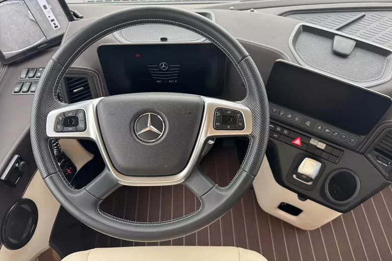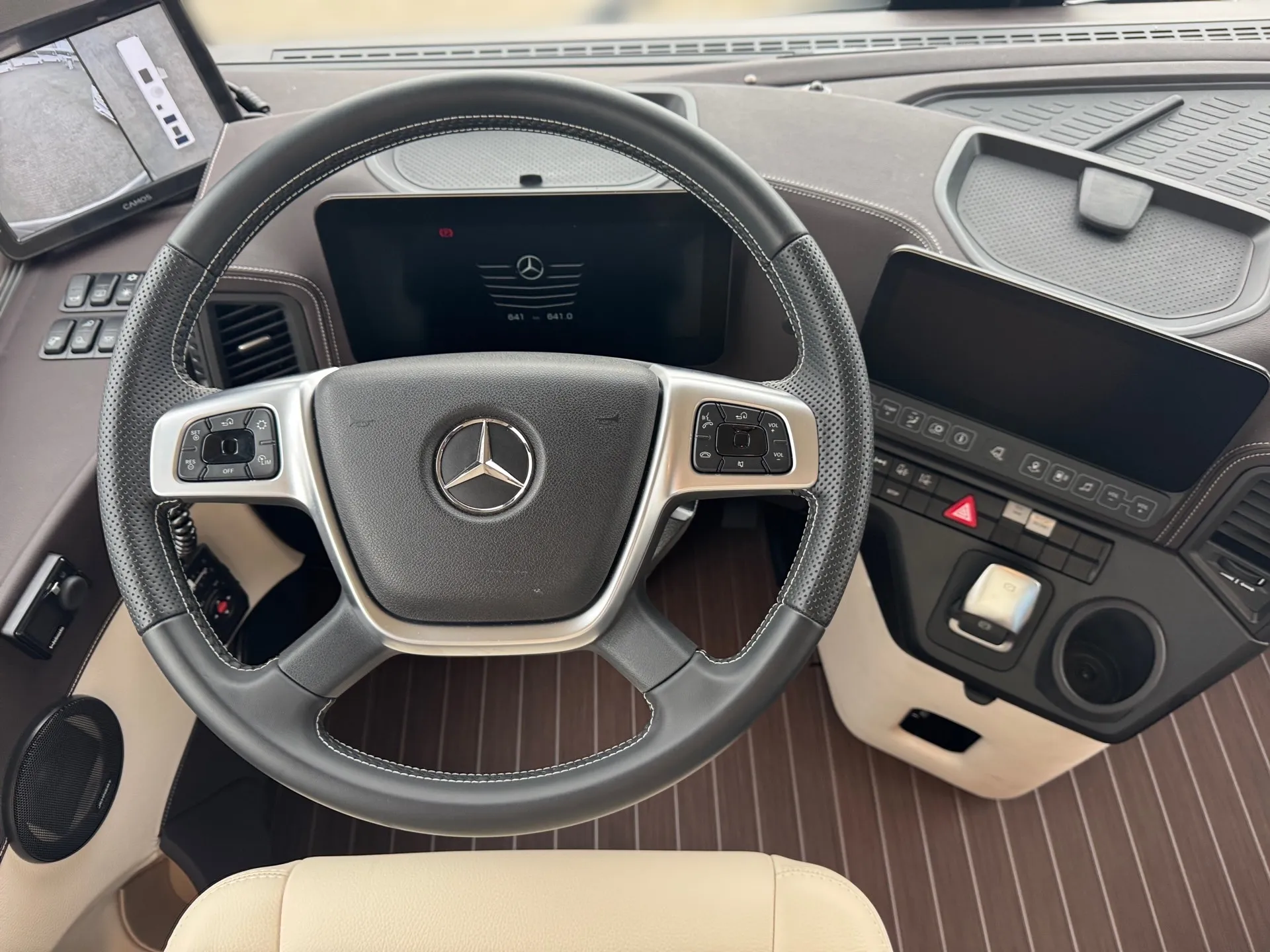 -Drivers-Assistenz-Paket (Multimedia Cockpit mit 12" Primär- und 10" Sekundärdisplay, MB-Truck Navigationssystem, Klimaautomatik mit Restwärmenutzung anstatt Klimaanlage, Radargesteuerter Abstandsregeltempomat)