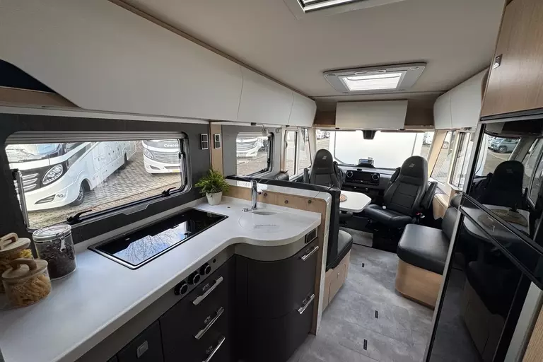 - B-ML I BLACKLINE 880 PAKETINHALTE:-Mercedes-Benz Sprinter 5,5 t - 417 CDI - 125 KW/170 PS - Euro VI-E -Außenfarbe Crystal-Silver-Metallic -HYMER Premium Voll-LED Scheinwerfer -Außenspiegel abgehängt in Schwarz, elektrisch beheiz- und verstellbar, inkl. Weitwinkelspiegel -Ablage für Smartphones inkl. wireless charging Funktion und Ladestandsanzeige -Ladepaket Instrumententafel mit 2 x USB-C Stecker 5V / 1x 12V-Steckdose -Lederlenkrad (bei Automatikgetriebe) -Vollautomatische Klimaanlage THERMOTRONIC -Aktiver Abstands-Assistent DISTRONIC PLUS inkl. Lenkrad-Multifunktionstasten -Verkehrszeichen-Assistent -Navigation & Smartphone-Integration für MBUX-System -Designbeklebung BlackLine -Elektrische Dachmarkise inkl. dimmbarer LED-Beleuchtung, Gehäuse schwarz, 600 x 300 cm -Elektrischer Rollladen im Bug inkl. Sichtschutzrollo für Frontschreibe (von unten nach oben zuziehbar) und Sonnenblendenfunktion -Schublade und Einlegewanne als Stauraum in der Sitzgruppe -Einlegeboden mit Holzoberfläche -4 x 230 V / 1 x 12 V / 1 x Doppel-USB Zusatzsteckdosen sowie Wohnkomfortleuchten -HYMER Connect Sensoren-Paket inkl. 1x Gasfüllstandssensor, 1x Temperatursensor und 2x Kontaktsensor -Solaranlage 3 x 95 Watt mit Solarladeregler (MPPT) und Anzeige -Spannbettlaken nach Maß für Heckbetten individuell an Matratzen angepasst -Automatische Gasflaschenumschaltanlage mit Crash Sensor und EisEx -Fußboden in Betonoptik -4 Kissen mit Bezug -Gasfilter für automatische Gasflaschenumschaltanlage -Wasserfilter für Frischwassersystem -Smart Connect Wasserfüllstandsanzeige (in 1%-Schritten) -32" Smart LED-TV mit integrierten Lautsprechern, Fernbedienung, HYMER Smart-Multimedia-System mit Bluetooth (DVB-T/C, DVB-S2) und elektrischem Halter inkl. Receiver -5G-WLAN-Router mit Außenantenne und Dual-SIM-Slot (SIM-Karte nicht inbegriffen)