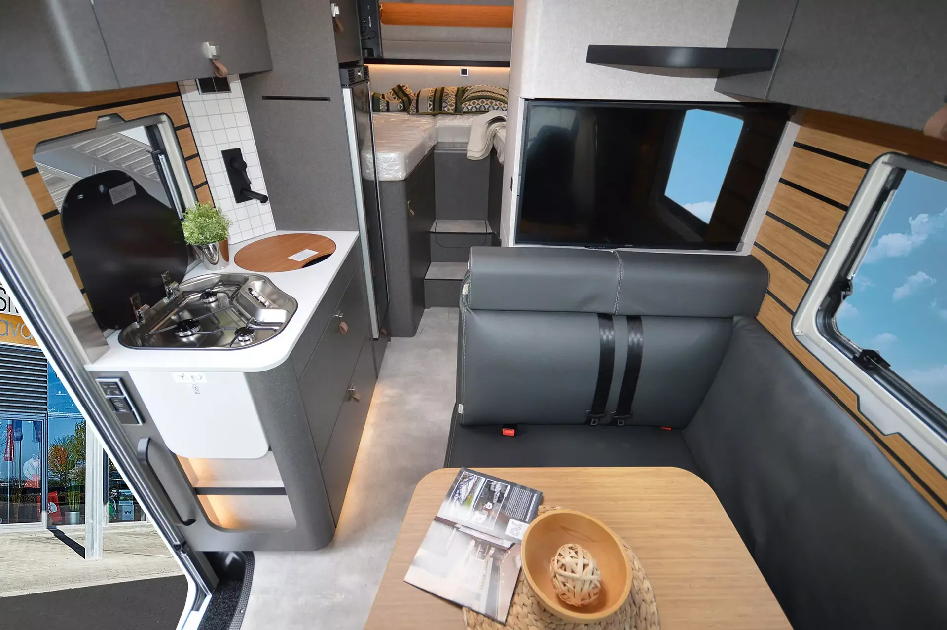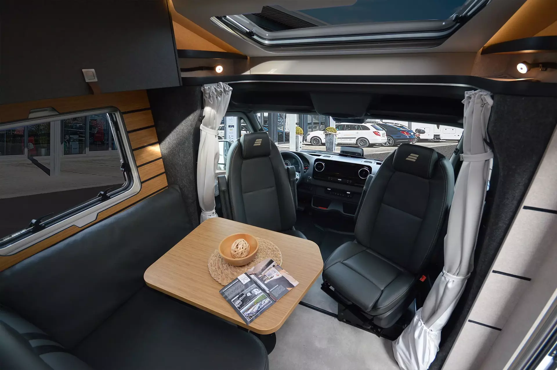 -Bettenbau für Komfort L-Sitzgruppe inkl. Zusatzpolster und absenkbarem Tisch unter Einbeziehung des Fahrersitzes