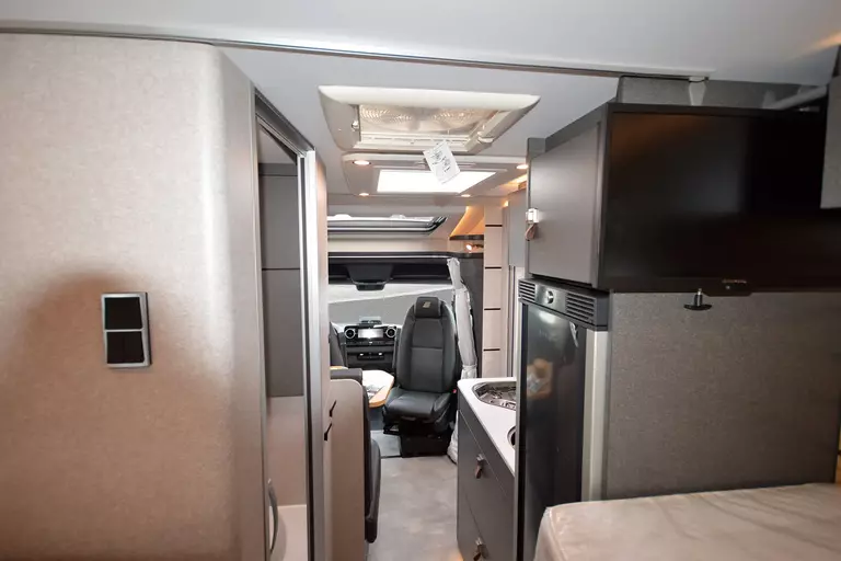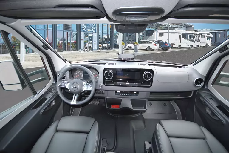 -Arktis-Paket (Gas-Warmwasserheizung inkl. Fußboden- und Garagenbodenheizung, Wärmetauscher für Gas-Warmwasserheizung, Wärmetauscher-Vorbereitung Mercedes-Benz, Komfort-Eingangstür mit Fenster, Verdunkelungsrollo, integriertem Mülleimer und 2-fach Verriegelung, Isolier-Trennvorhang für Fahrerhaus, doppellagig genäht, Isoliermatte für Fahrerhaus-Fußraum, lose beigelegt, Zuheizer (unterstützt die Heizung beim Erwärmen des Fahrzeugs), Riffelblechboden in Heckgarage)