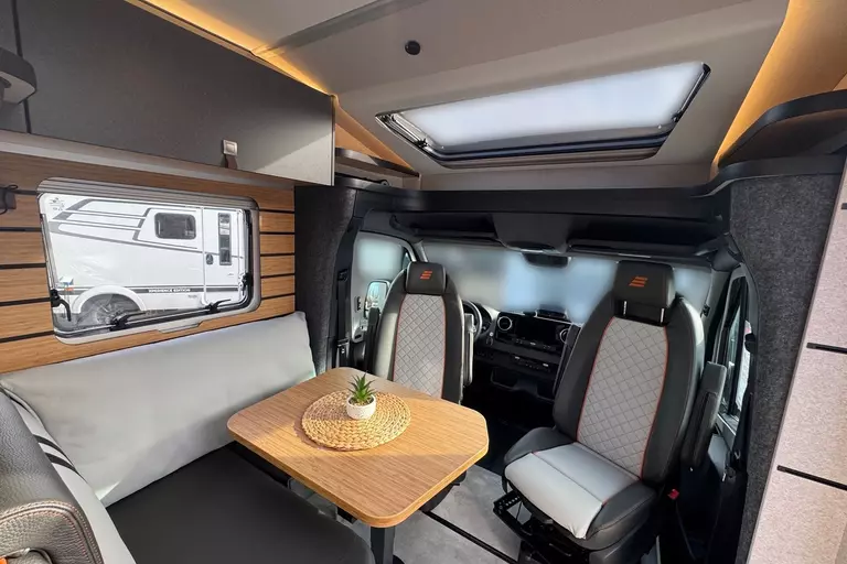 -Bettenbau für Komfort L-Sitzgruppe inkl. Zusatzpolster und absenkbarem Tisch unter Einbeziehung des Fahrersitzes