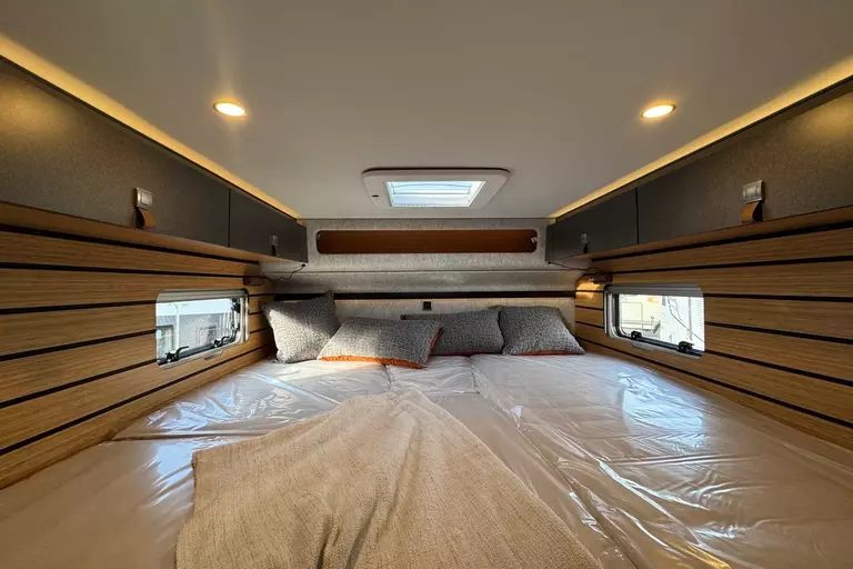 - GFK Dachbeschichtung (Die GFK-Dachbeschichtung ist nicht der Fahrzeugfarbe angepasst. Die Oberfläche der GFK-Beschichtung entspricht in seiner Güte nicht einem lackierten Außenblech.)