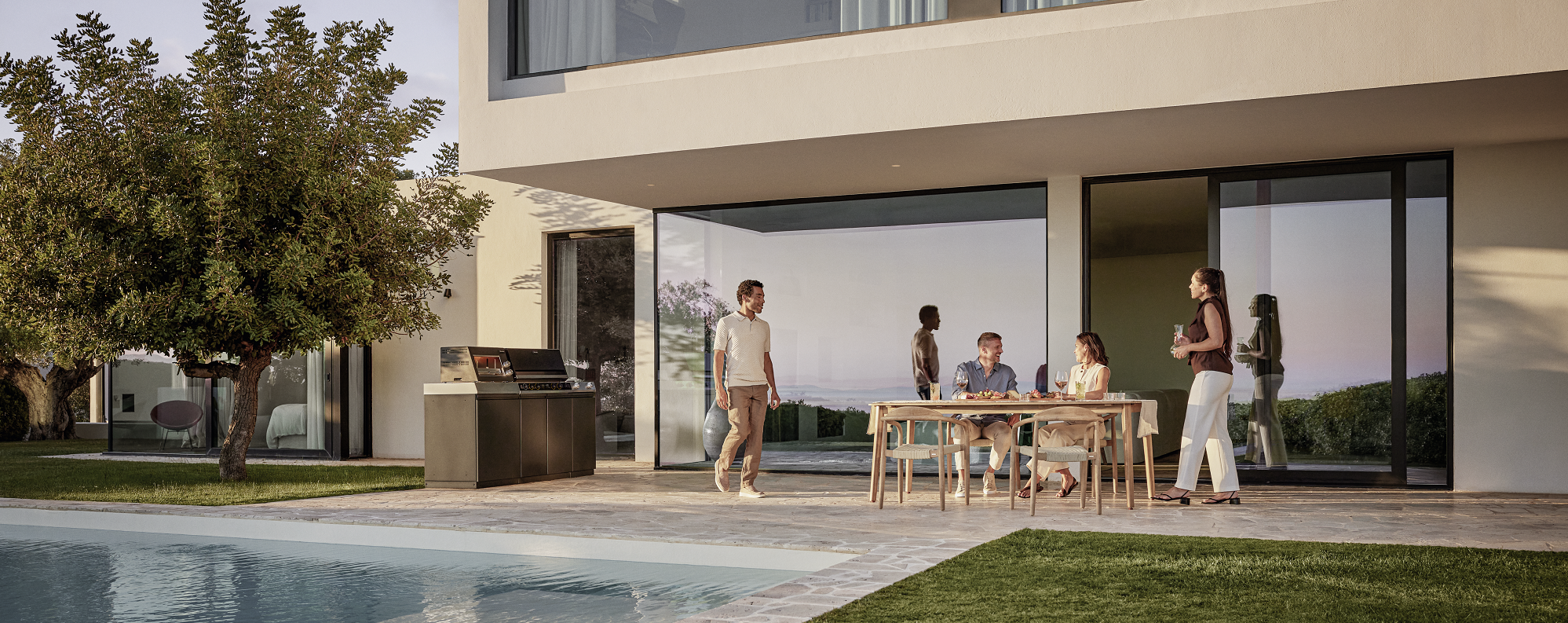 Ob kompakte Grillstation oder vollwertige Gartenküche – die Miele Outdoor-Küche besteht aus flexiblen Modulen, die sich ideal an Terrasse, Garten oder Dachbereich anpassen.