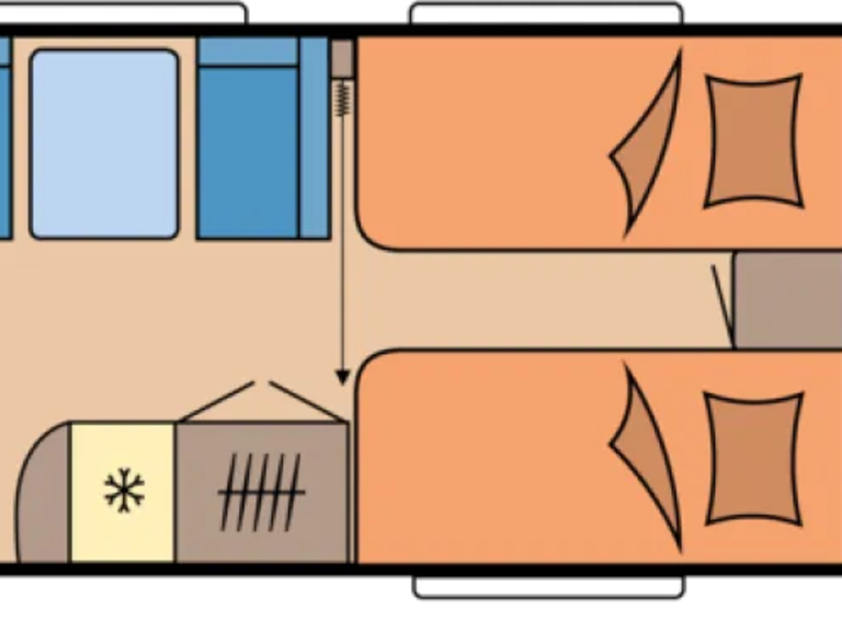 Hobby OnTour bietet drei verschiedene Grundrisse, die jeweils Platz für bis zu 5 Personen bieten. Diese Grundrisse variieren in der Anordnung der Schlaf- und Wohnbereiche und bieten kompakte Lösungen für unterschiedliche Reisebedürfnisse. Zur Auswahl stehen Grundrisse mit französischen Betten, Einzelbetten und Kinderbetten, die den Raum optimal nutzen und den Reisenden maximalen Komfort bieten.