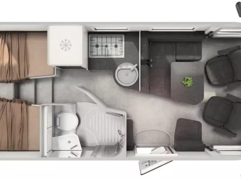 Der HYMER Free bietet drei Grundrisse: Free 540, Free 600 und Free 602, jeweils mit einer Länge ab 541 cm und Schlafplätzen für 2 bis 4 Personen.